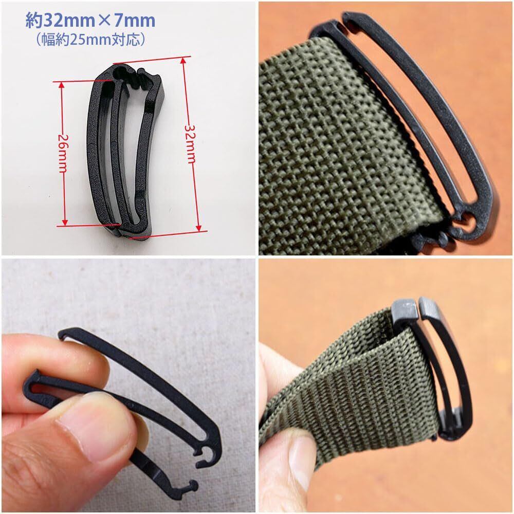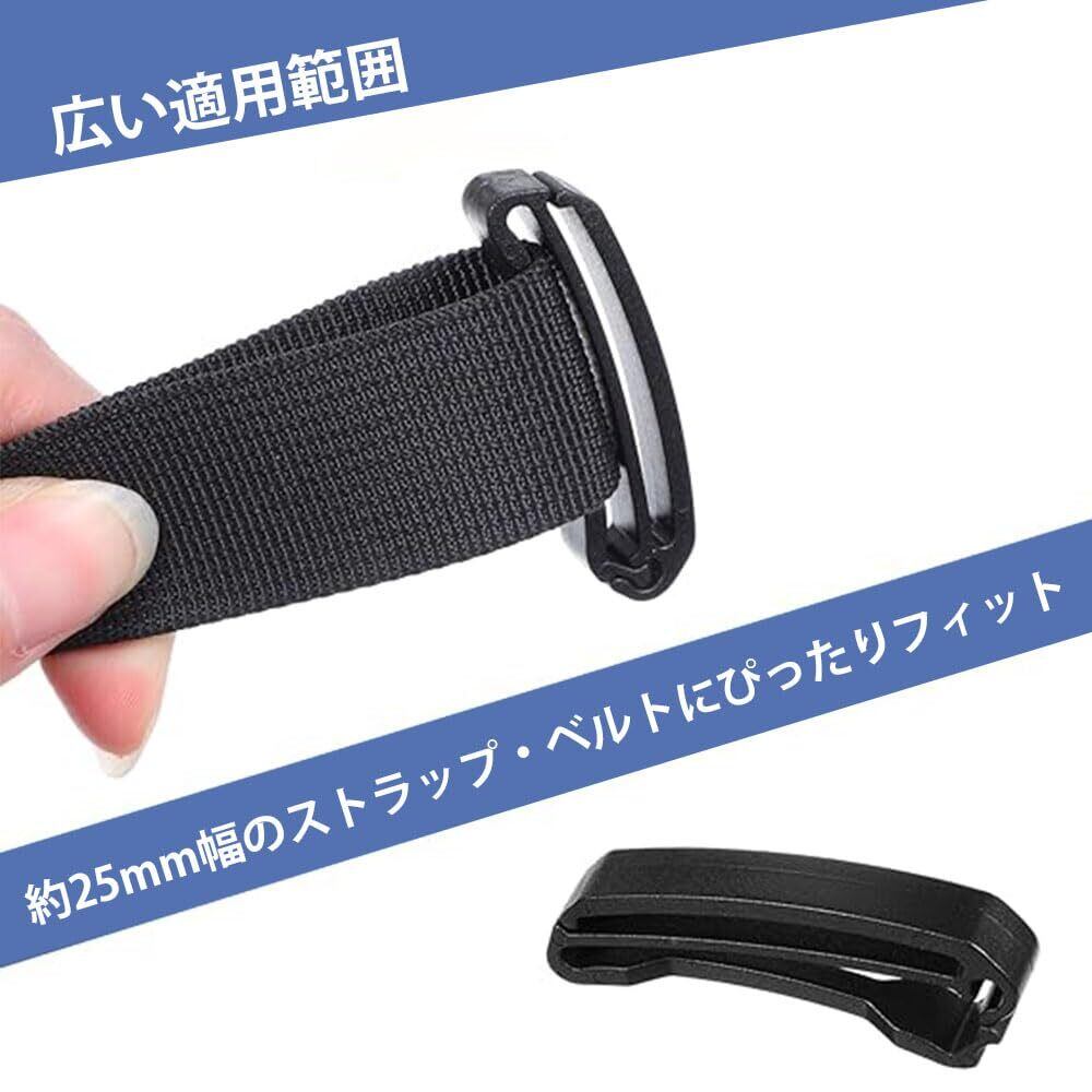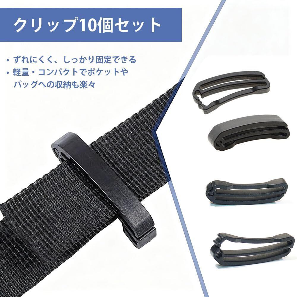 テープクリップ ベルトクリップ 10個セット プラスチック ウェビングベルト用 ベルト止め 軽量 アジャスター セット リュック バッグ アウトドア用 固定 多機能 キャンプ用品 補助バックル 楽々装着 ブラック