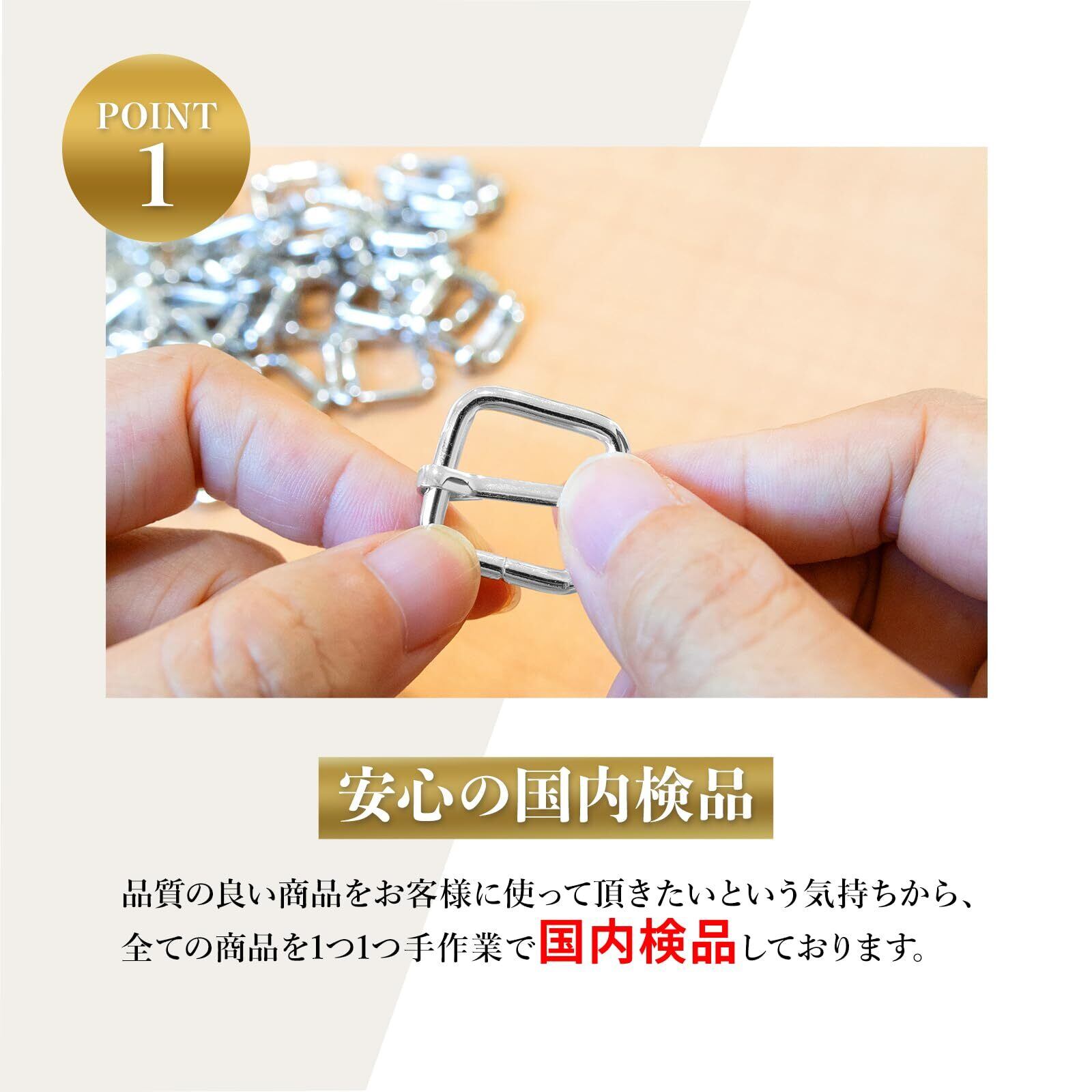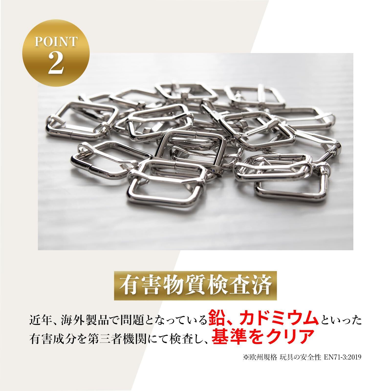 JoyWaveのリュックカン(移動カン)は、バッグやリュックのベルト長さ調整に使用されるアジャスター金具(送りカン)です。 ハンドメイド作品の制作から、バッグの修理・補修、DIY用途まで、幅広いシーンでご使用いただけます。 リュックカン(移動カン)20個セット ・リュック、ショルダーバッグ、トートバッグなどのベルト調整 ・ハンドメイド、手芸、レザークラフト、DIY制作 ・バッグやかばんの修理・補修用パーツ シンプルで使いやすい形状のため、初心者の方から経験者の方まで安心してお使いいただけます。 内径13mm/15mm/19mm/25mm/31mm/38mmの全6サイズ展開。 アンティークゴールド・シルバー・KCゴールド・ブラックニッケルの4カラーからお選びいただけます。 ※ベルト幅に合ったサイズを必ずご確認ください。 本商品は全品国内検品を実施しております。 また、鉛・カドミウムなどの有害物質についても専門機関にて検査済みですので、安心してご使用いただけます。 ハンドメイド素材として、安定した品質を重視される方にもおすすめです。