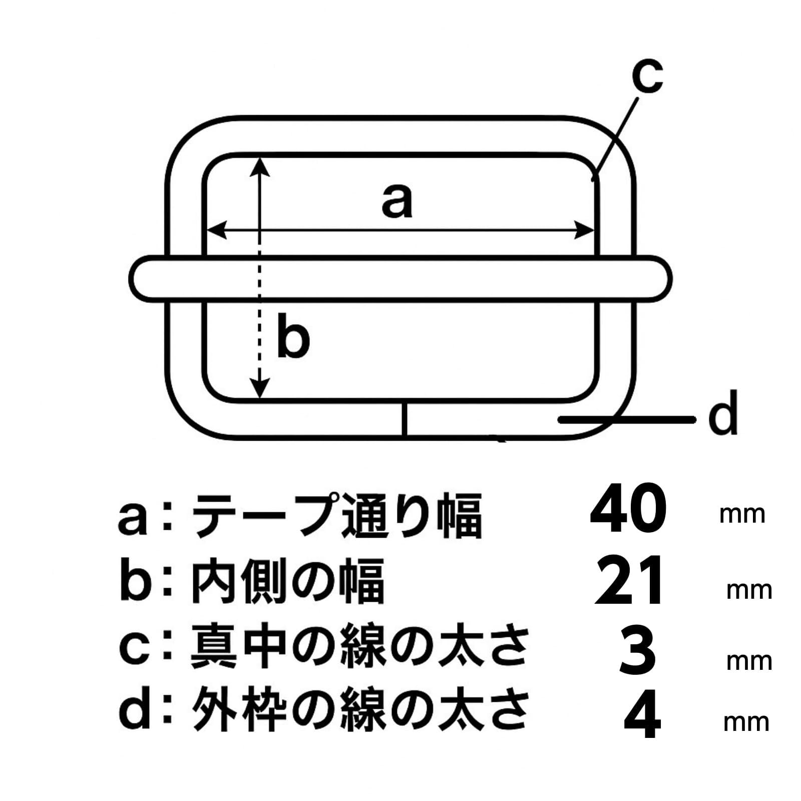 a(テープ通り幅)40mm・b(内側の幅)21mm・c(真中の線の太さ)3mm・d(外枠の線の太さ)4mm・入り数:2個 アンティークゴールド