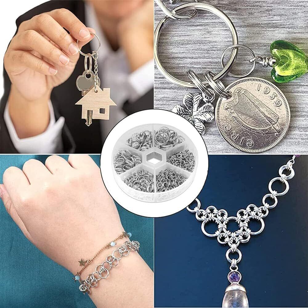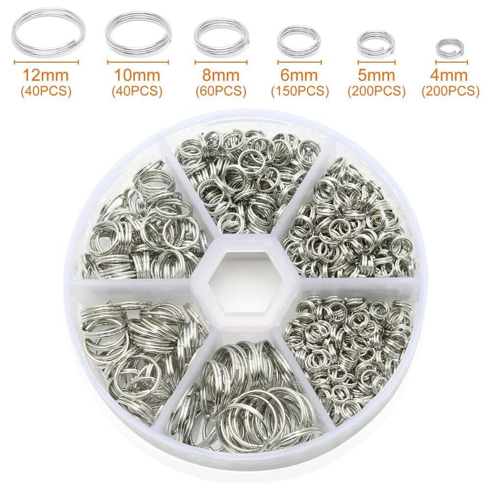 【2022最新】二重リング 二重丸カン 6種セット 4-12mm直径 DIY用 手芸用品 線二重カン プラチナ ラウンドケース付