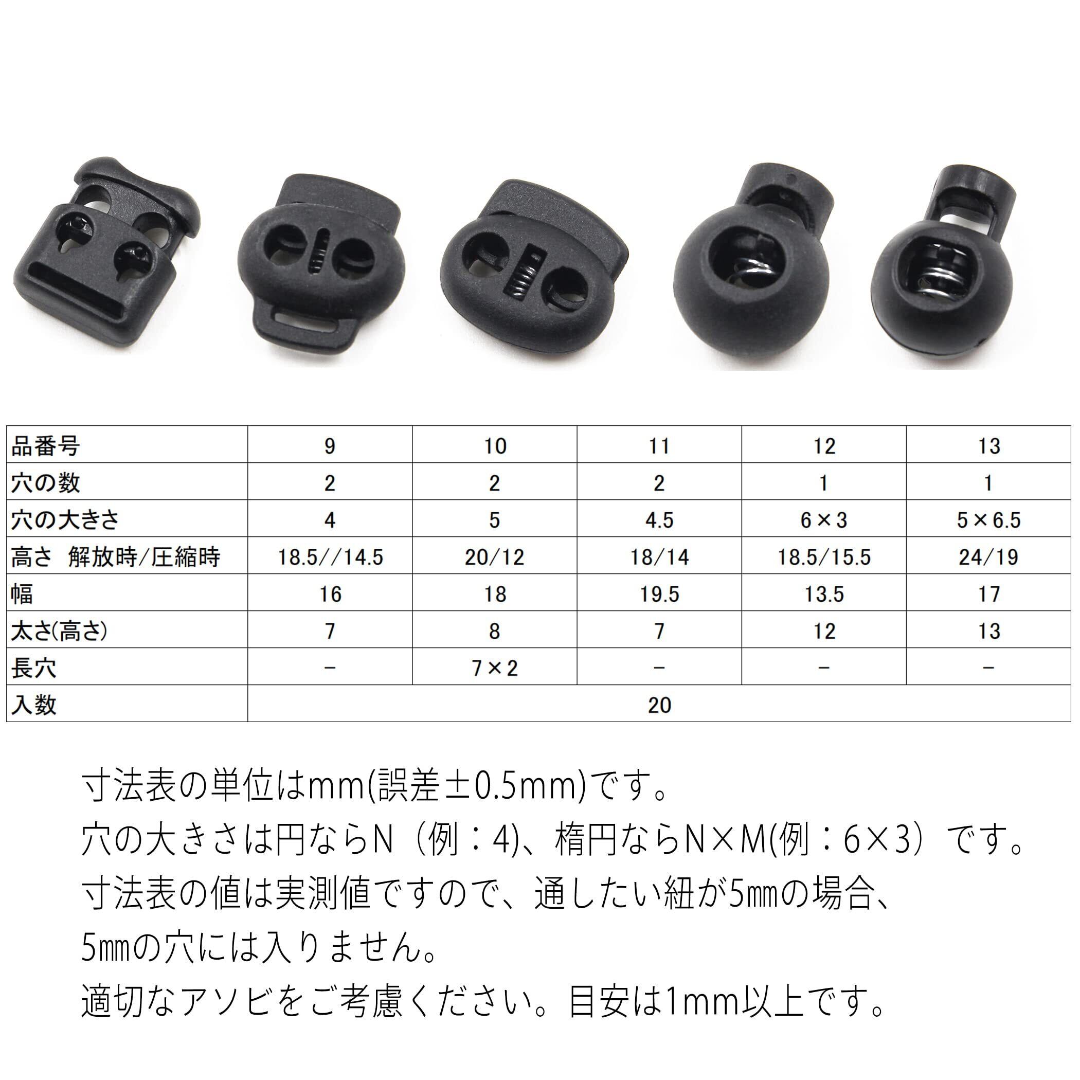 2つ穴のコードアジャスター、20個セットです。穴径4mm。3mmまでの紐に使えます。紐の太さ・摩擦に左右されますが、穴1つ通しで1000gの静荷重に耐えられます。パーカーやジャージ、ウィンドブレーカーの、ゴムや紐の調整、コードストッパー、コードエンド、コードロック、シューズクリップの紐止めとしてご利用ください。