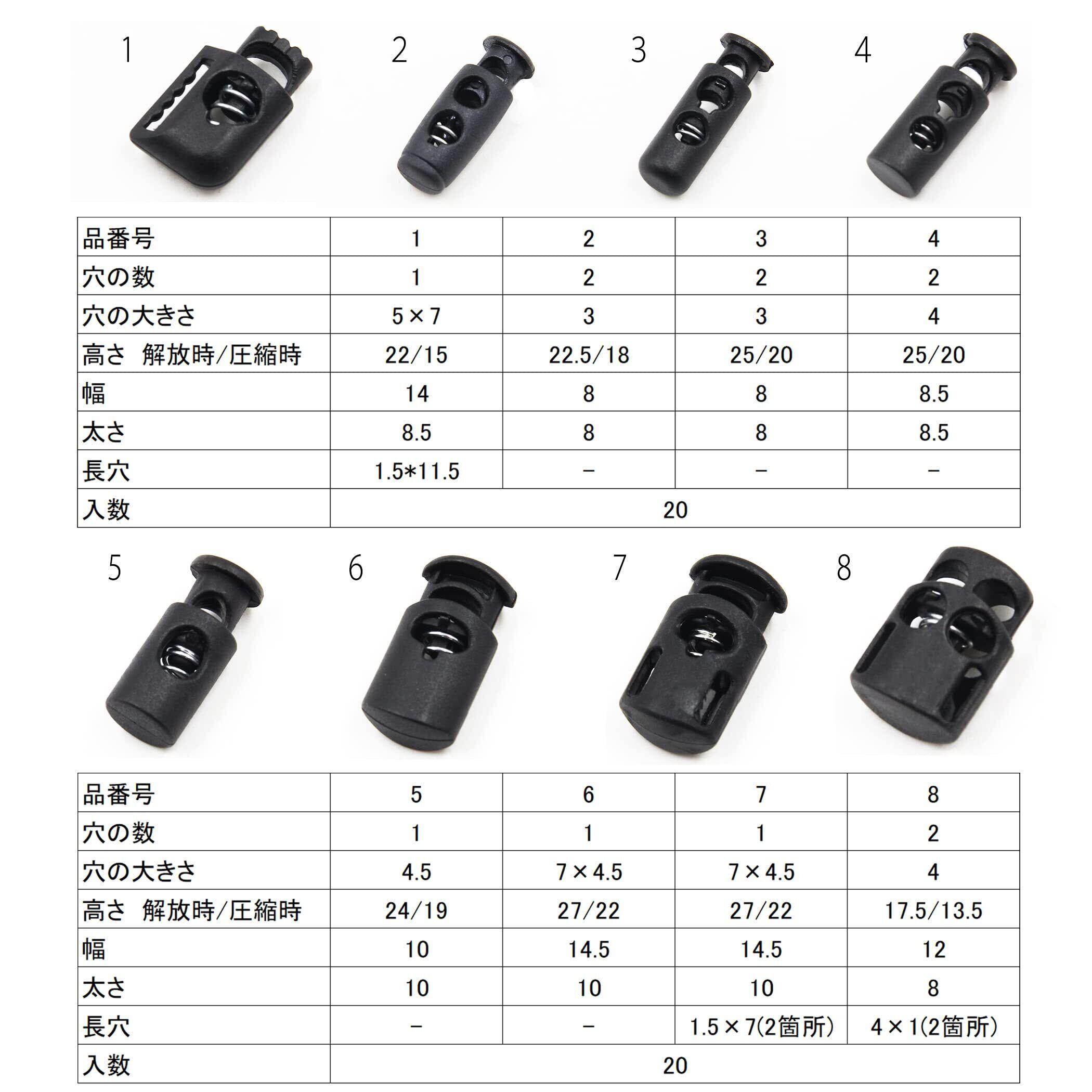 主な用途:パーカーやジャージ、ウィンドブレーカーの紐止め・ゴムや紐の長さの調整、コードストッパー、コードエンド、コードロック、シューズクリップ、靴紐、リュックの紐の調節等
