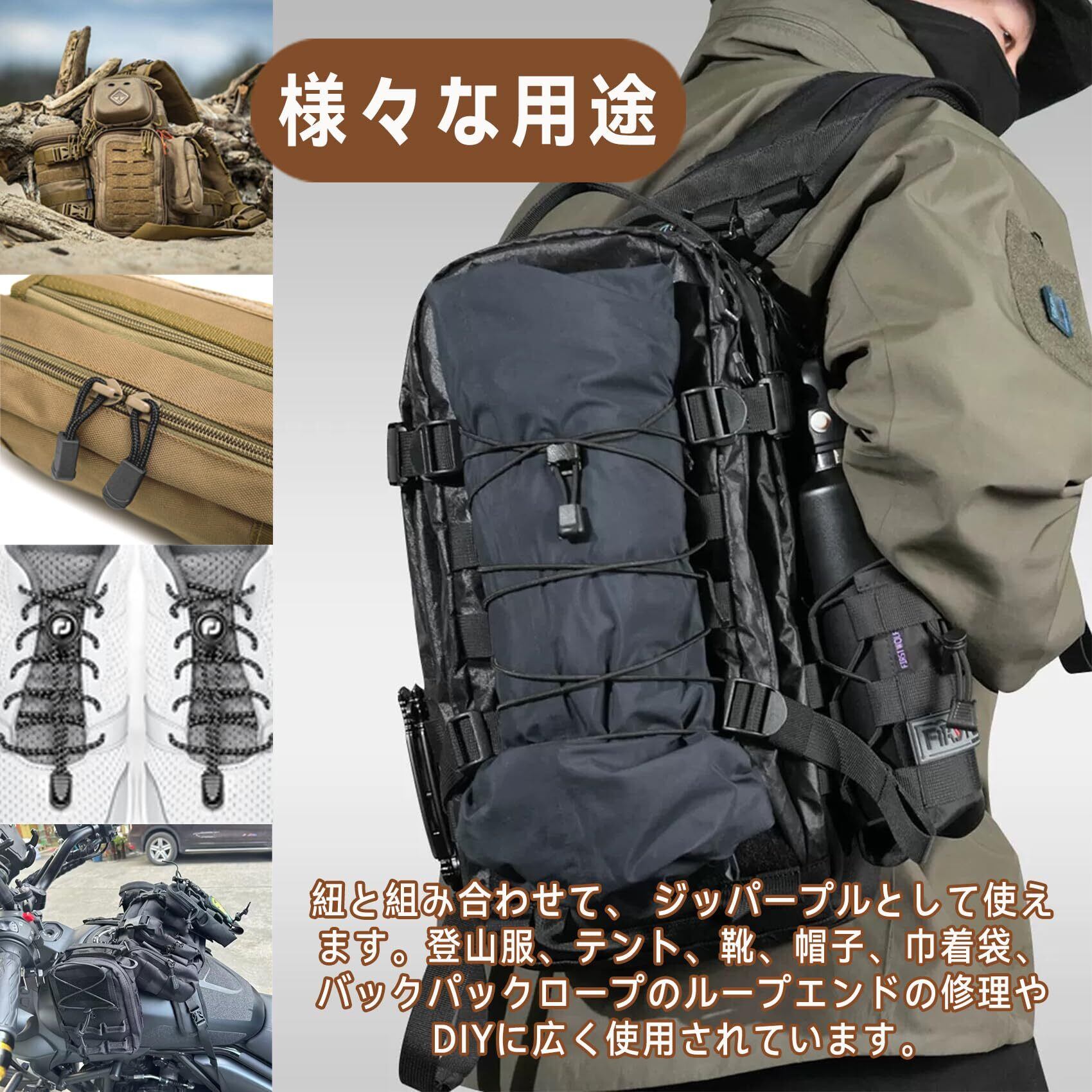 【用途】紐と組み合わせて、 ジッパープルとして使えます。登山服、テント、靴、帽子、巾着袋、バックパックロープのループエンドの修理やDIYに広く使用されています。