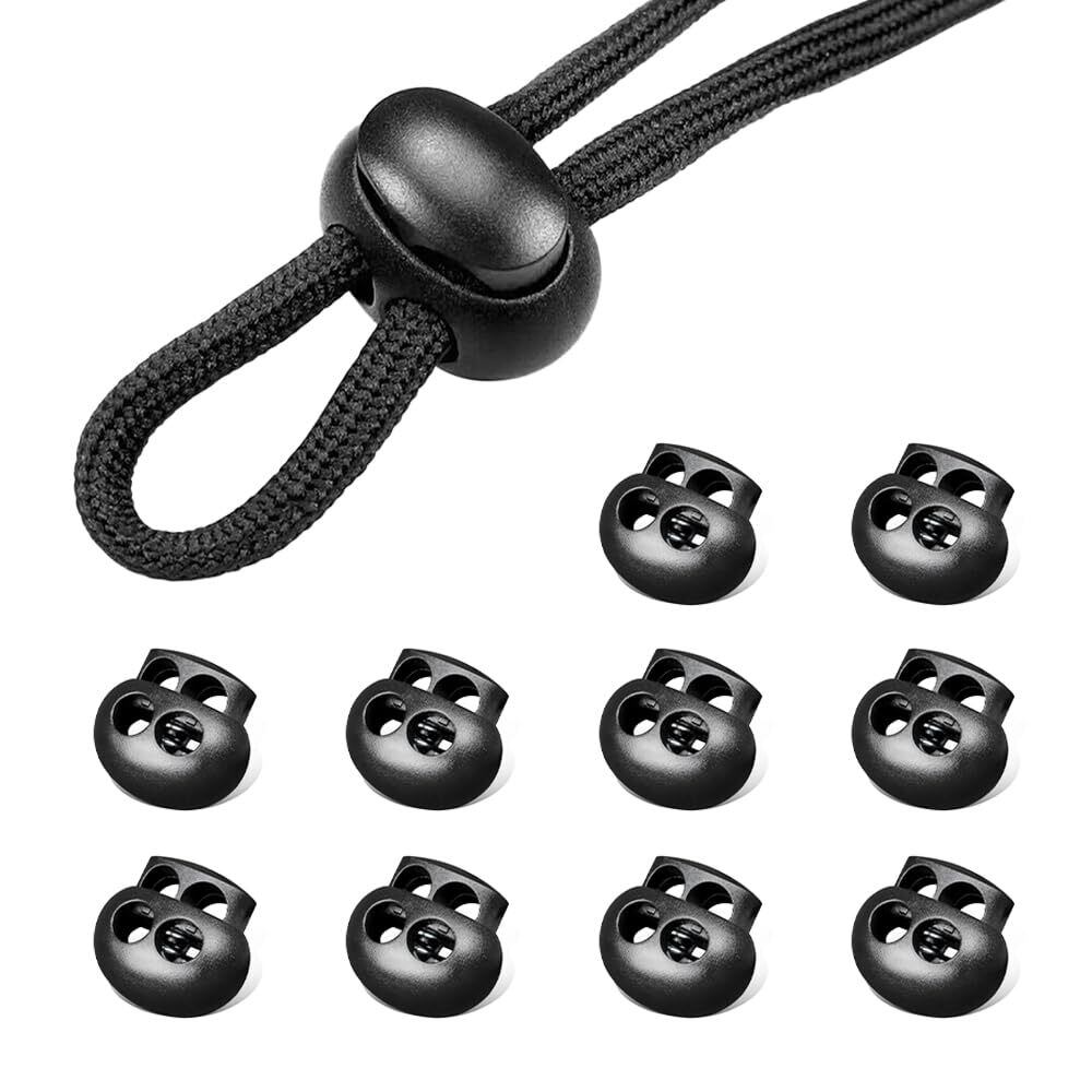コードストッパー 靴紐ストッパー ドローコード コードすとっぱー 紐 ストッパー コードロック 紐止め 紐止めストッパー コードストッパー 2つ穴 紐 留め具 シューレースロック ドローコード ストッパー シューレースストッパー 紐止め金具 6mm 黒 10個入
