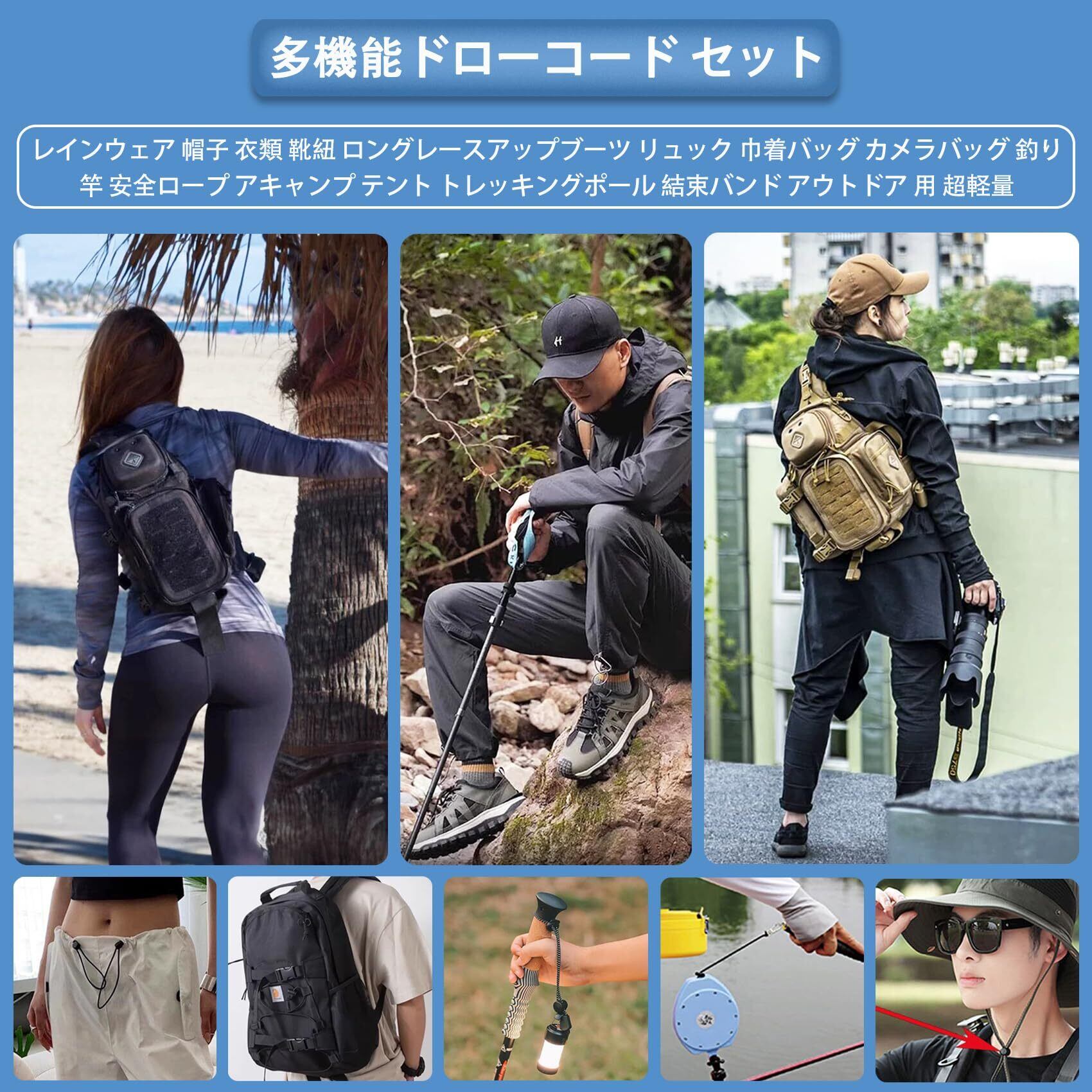 【多用途】レインウェア 帽子 衣類 靴紐 ロングレースアップブーツ リュック 巾着バッグ カメラバッグ 釣り竿 安全ロープ アキャンプ テント トレッキングポール 結束バンド。