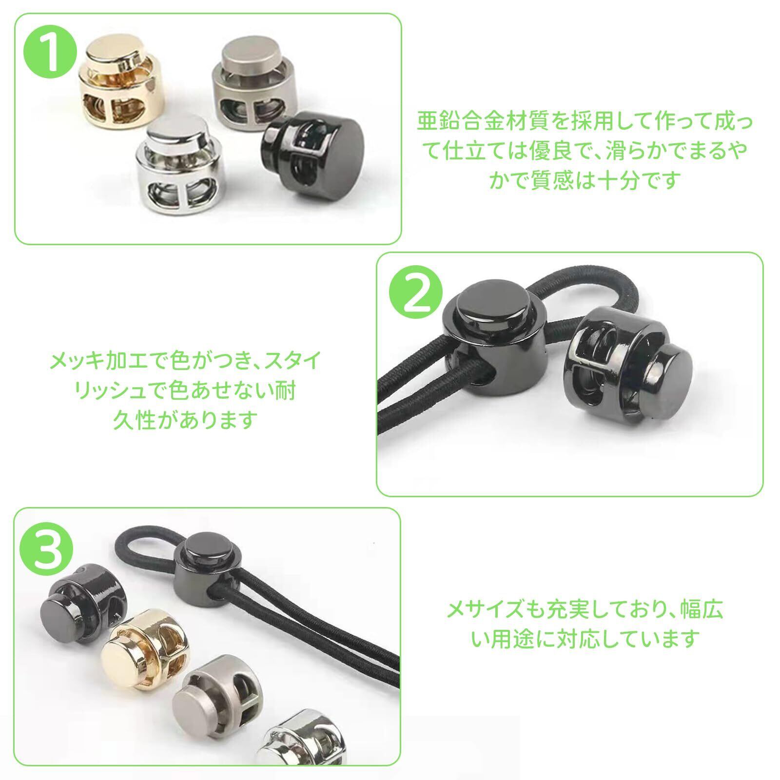 【簡単取り付け】スプリングを押してコードを通すだけで固定完了。2穴タイプの紐ストッパーは両端のコード管理に便利