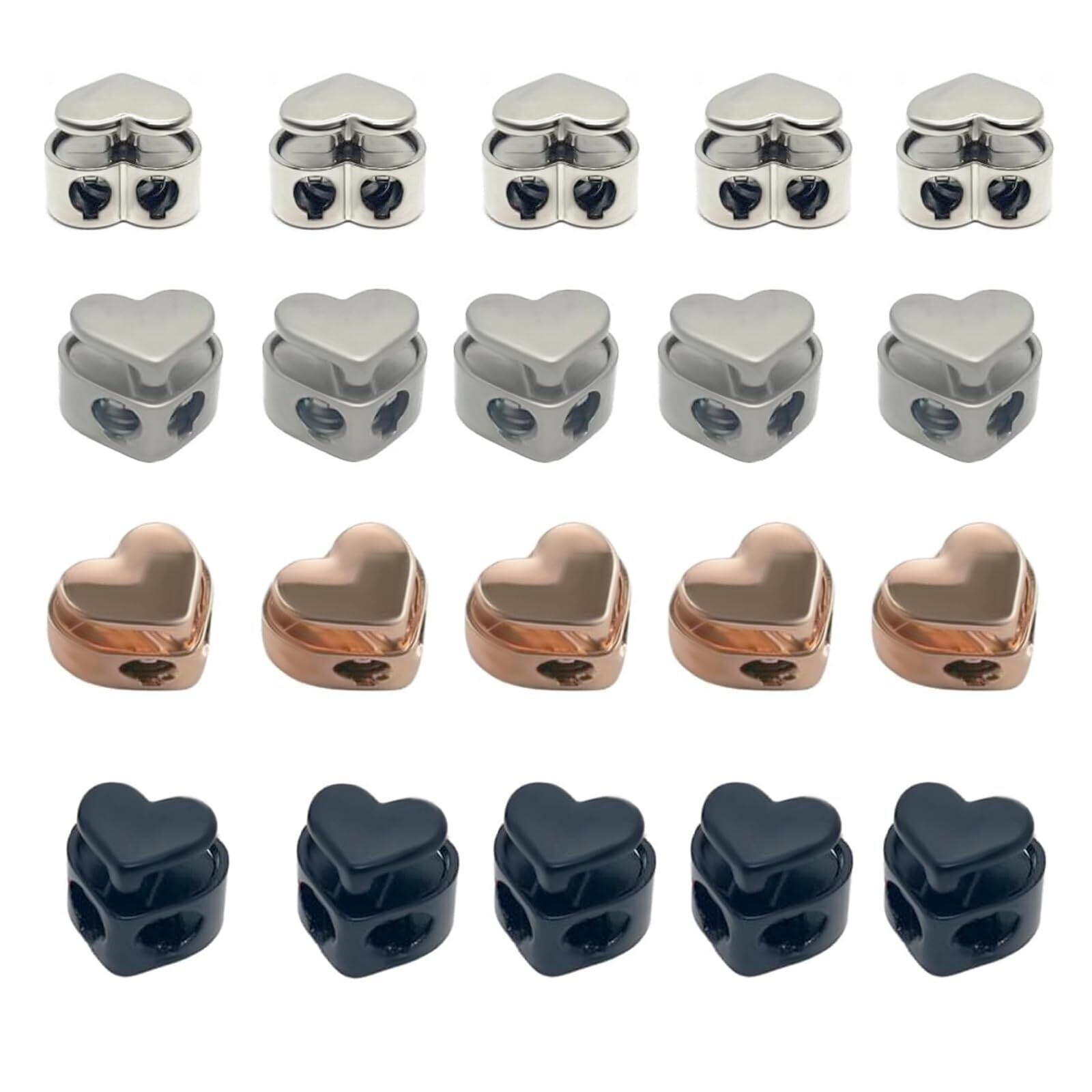 【特価セール】20個 コード ストッパー 2穴 金属 コードロック ストッパー 調整ストッパー 紐 丸型 穴径約5mm シューレースストッパー 交換 補修用 ハート