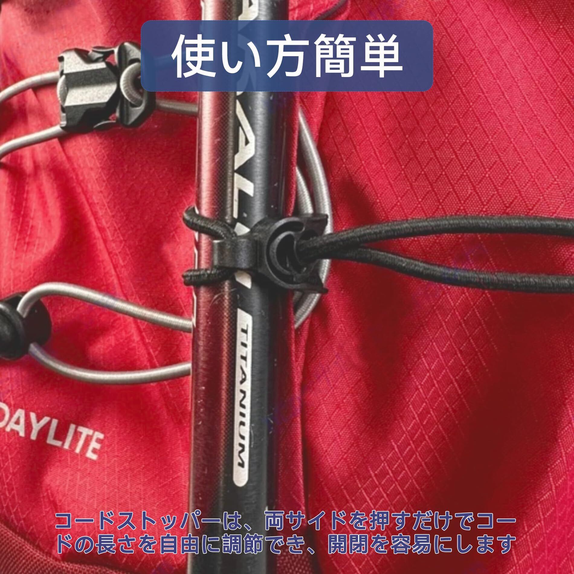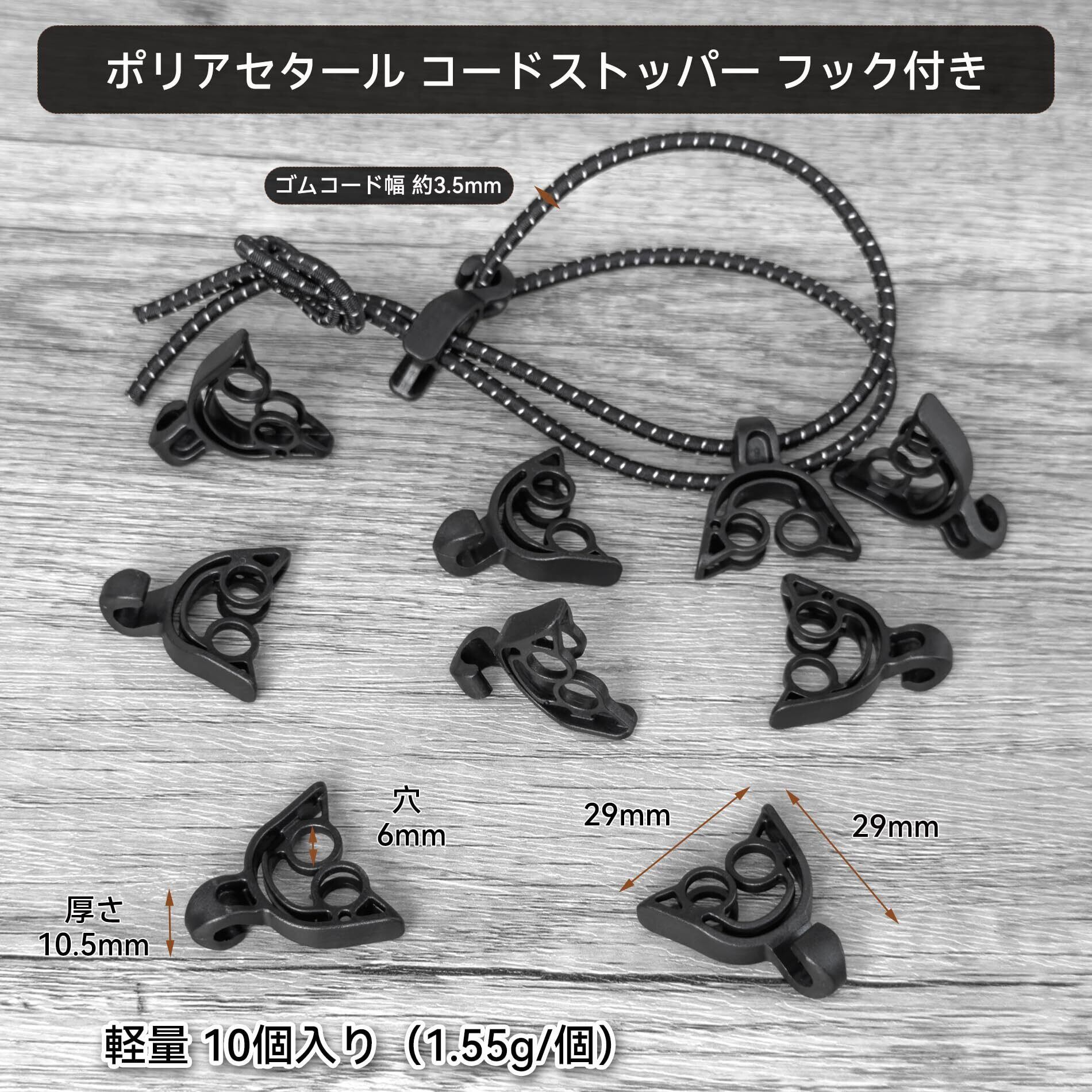 【特価商品】コードストッパー フック スナップ バンジーコード コードロック トレッキングポール ホルダー 紐留め パラコード ストッパー アウトドア キャンプ テント ポール 固定 結束 用 穴 6mm 10個 黒