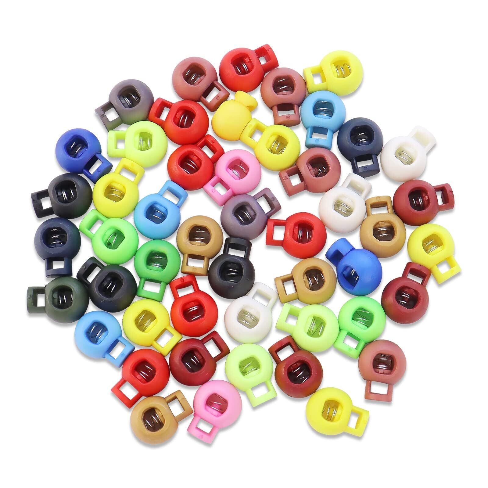 コードロック コードストッパー カラフルゴム紐 スプリングコードストッパー ゴム調整バックル ロープ アウトドア プラスチック製コードロック 調整ストッパー衣類 バッグ コード ロック 紐ホルダー 交換 補修用 50個入り カラフル