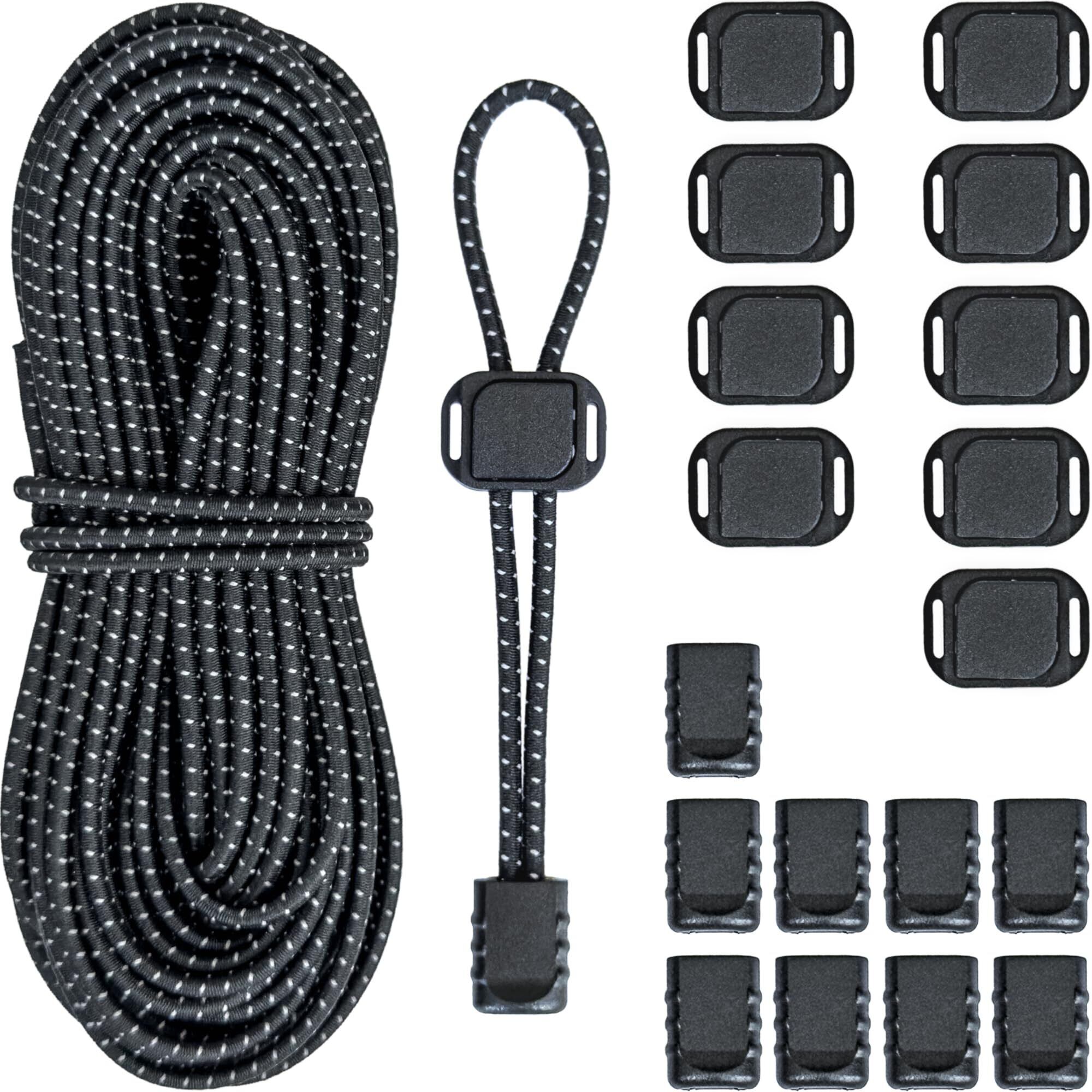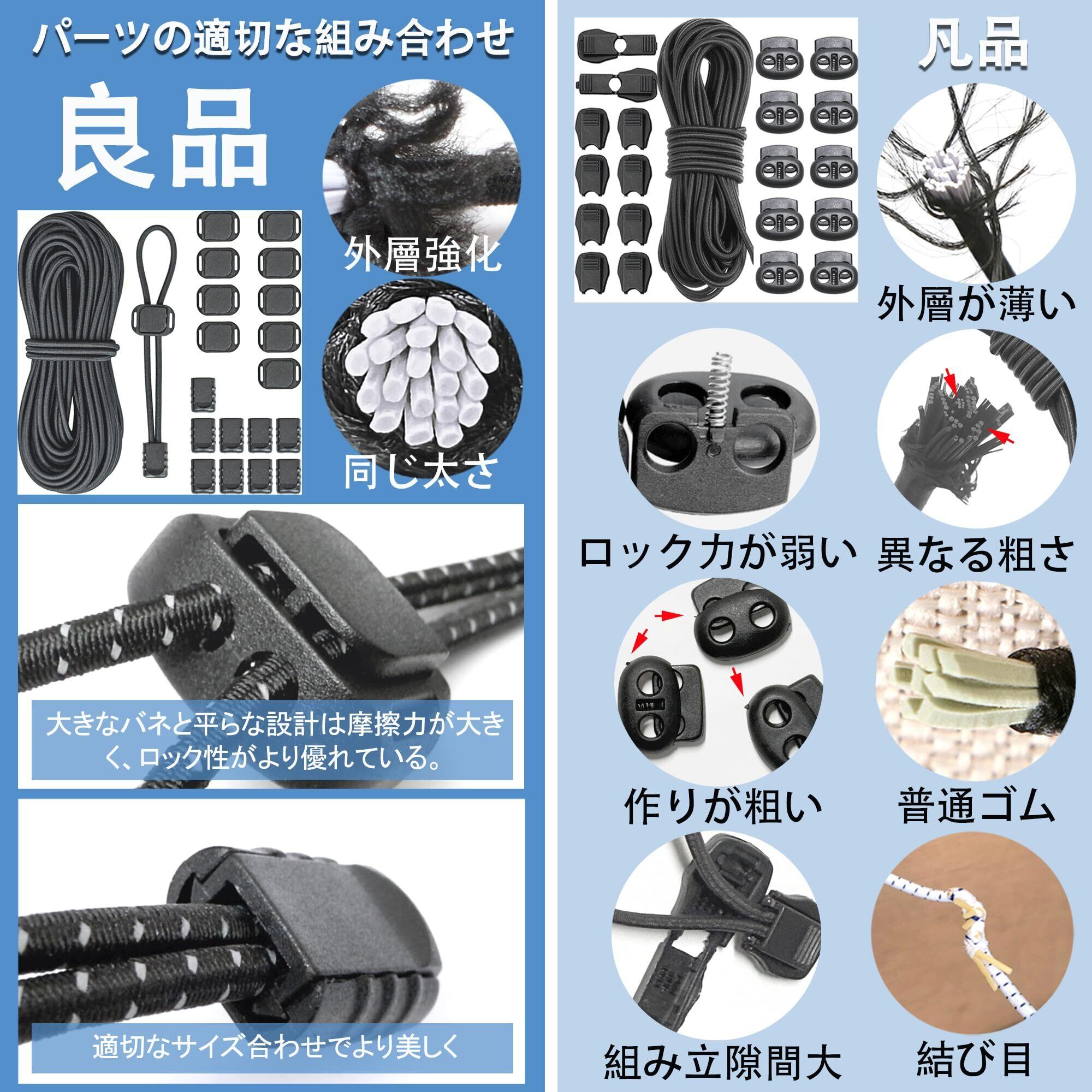 【2022最新】ゴムひも ストッパー 強力 ゴム紐 反射 2.5mm 10m ドローコード セット 靴紐 結ばない 靴ひも 丸紐 スプリング コードロック コードエンド 各10個 DIY用 21点 黒 BF251721
