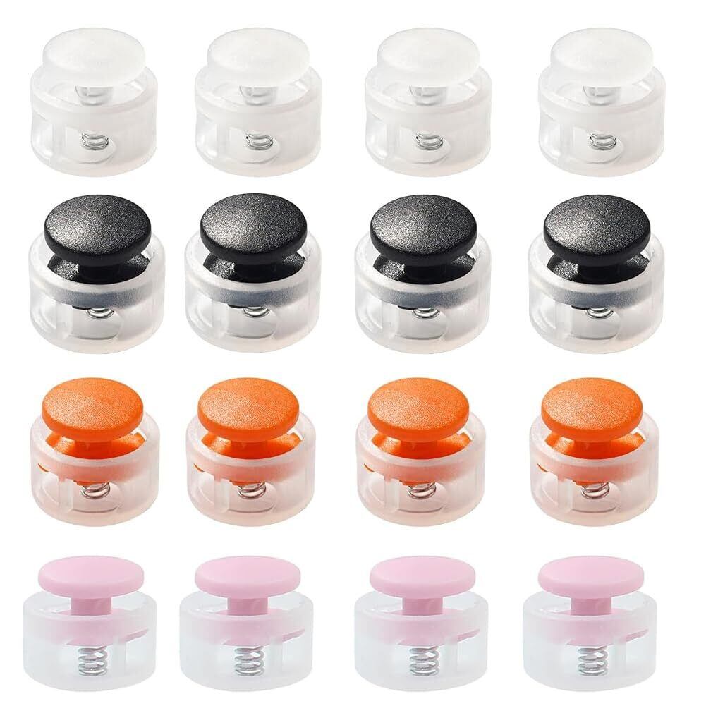 コードストッパー 4色 16個入り 紐止め 2つ穴 5mm 帽子 衣類 リュックサック 靴紐 留め具 補修用 DIY用
