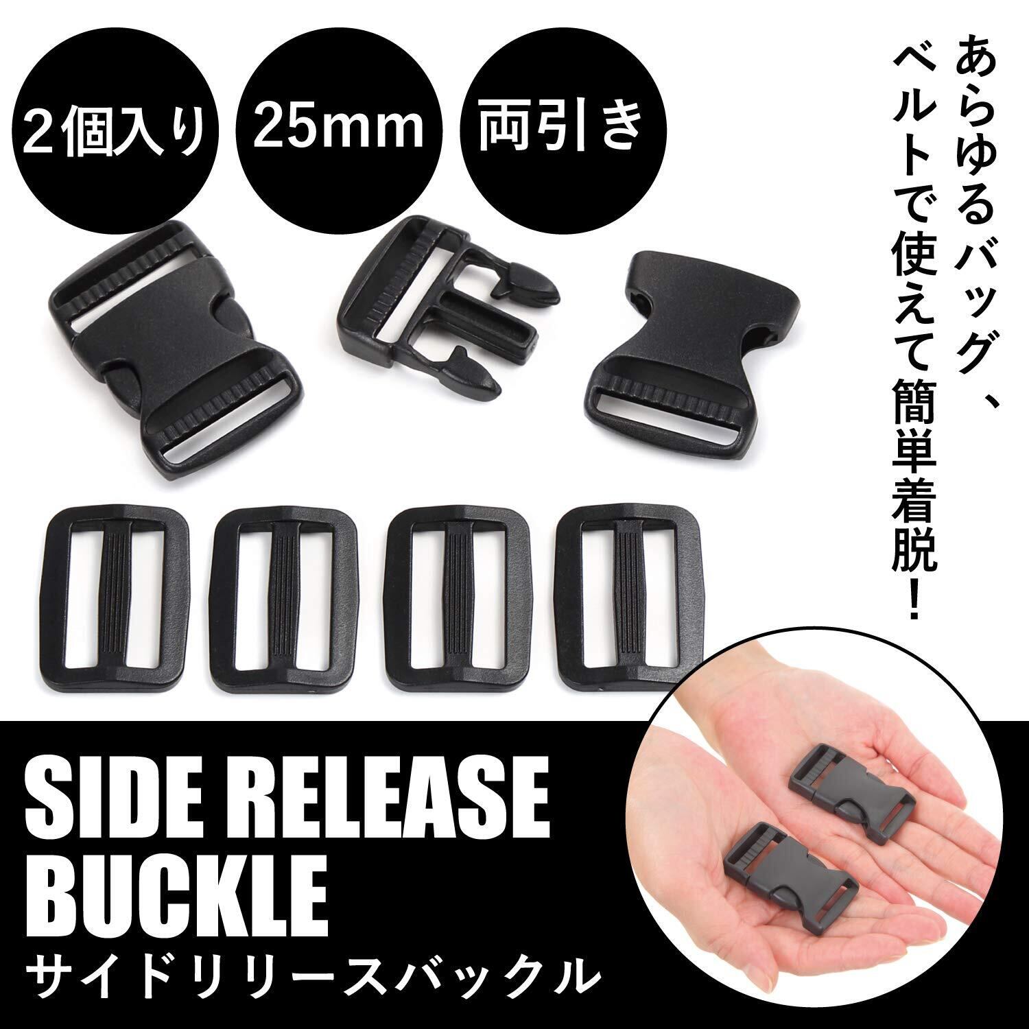 2個入 サイドリリース プラスチックバックル (25mm 両引)