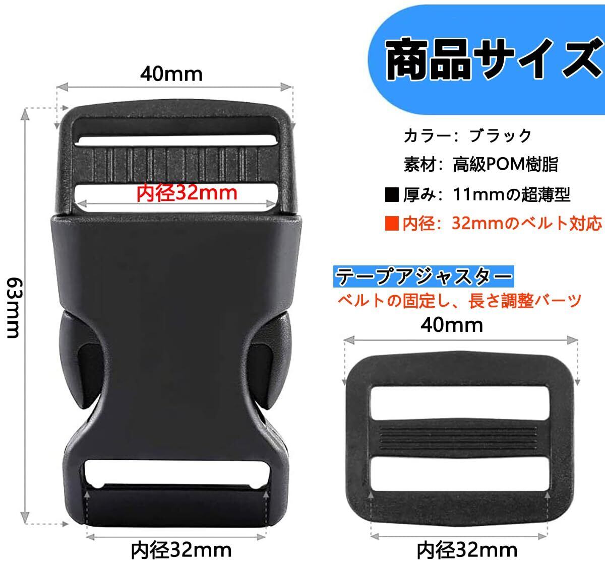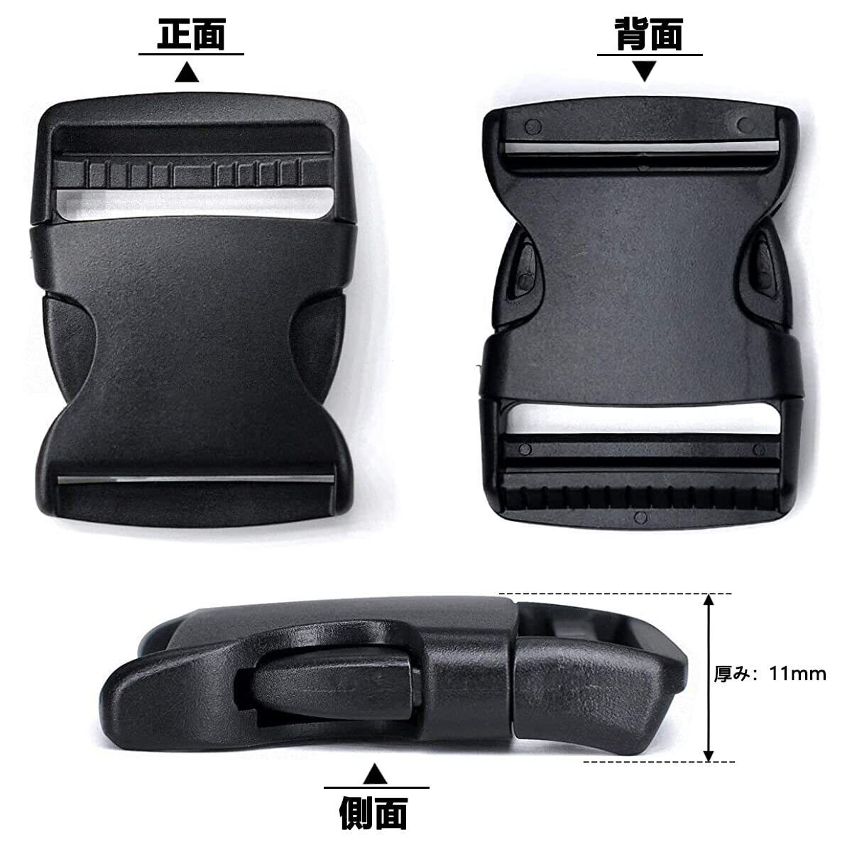 【バックルのサイズ】--バックル内径:25mm (対応テープ:25mm) ・外径縦:50mm 外径横:30mm 重さ:約7.5g/個。 アジャスター内径:25mm (対応テープ:25mm) ・外径縦:25mm 外径横:32mm 重さ:約2g/個。