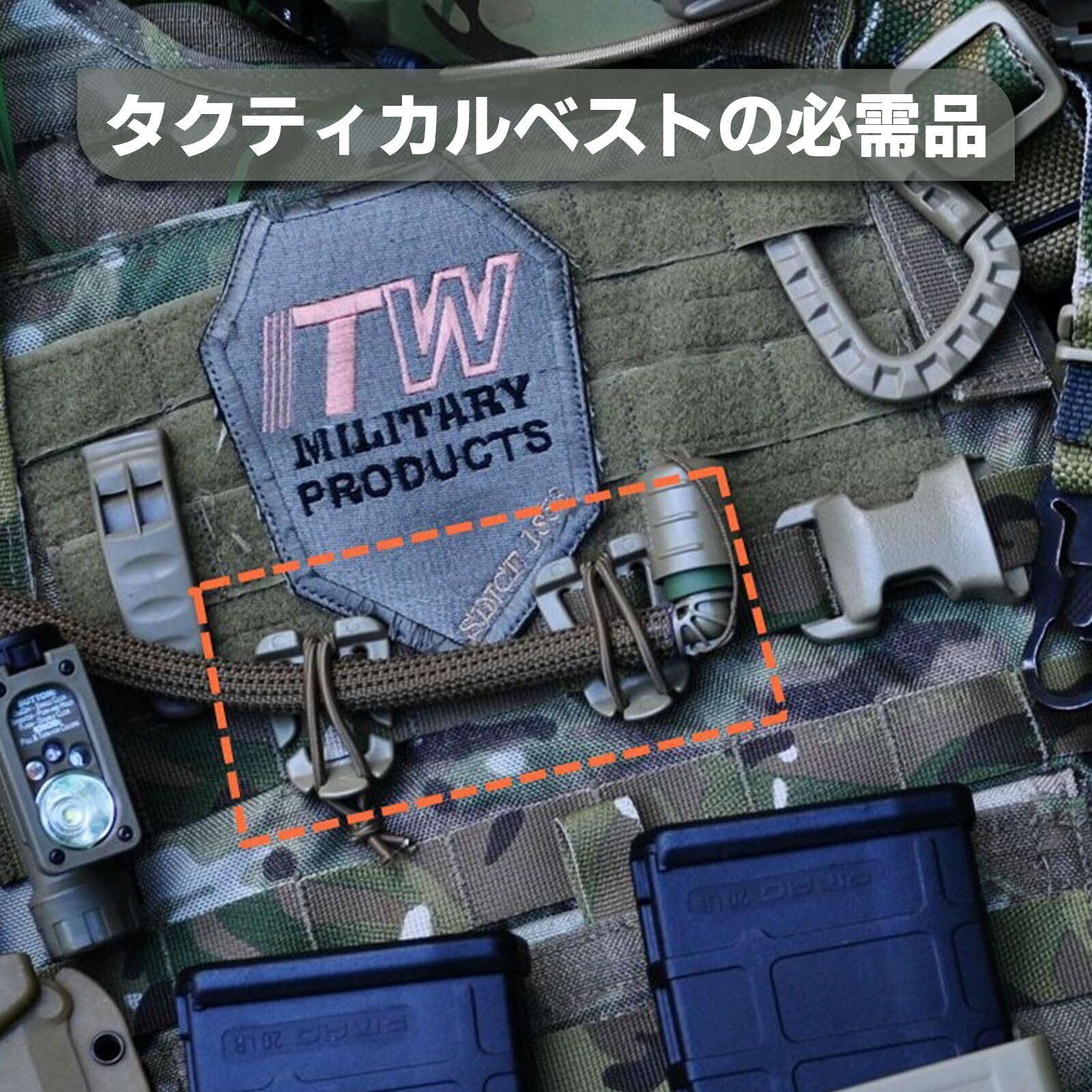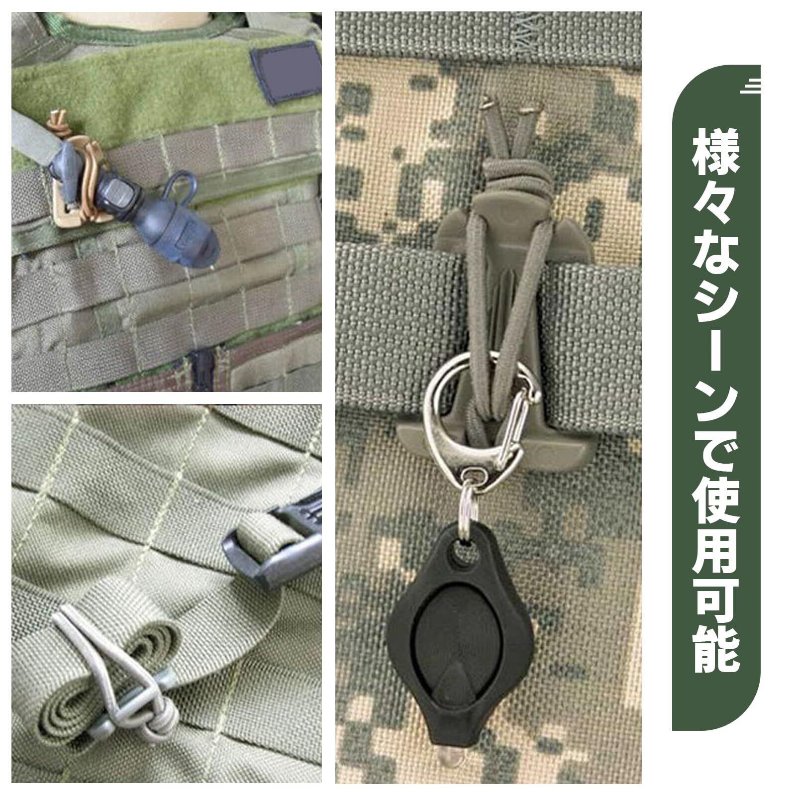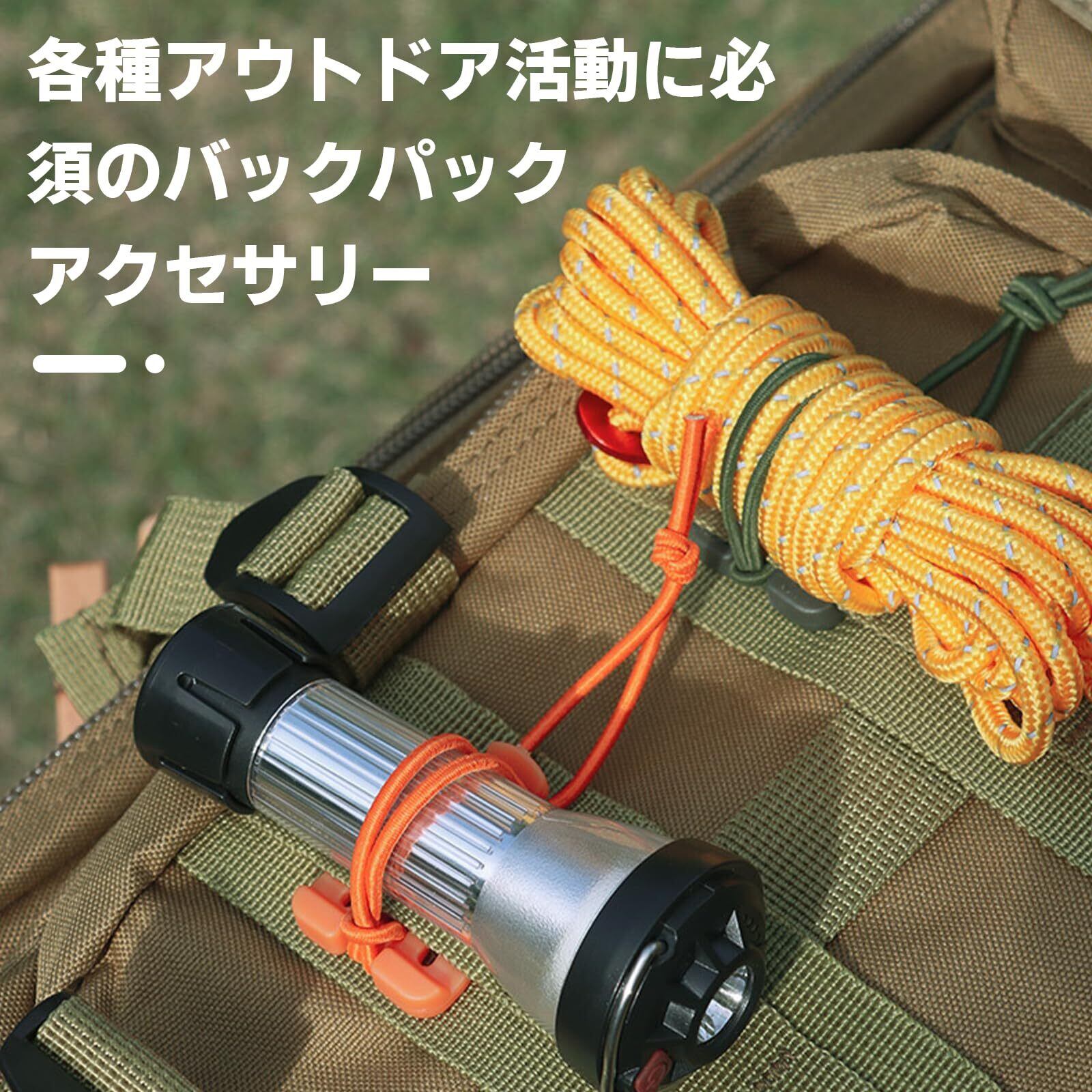 【幅広い用途】 リュック ひも 固定 様々なアウトドア活動、登山、キャンプ、サバイバルゲームなどに大活躍し、不可欠なリュック紐アクセサリーになります。またバックル、クリップ、フックなどとして活用することもあります。バックの余ったベルトの処理だけでなく、イヤホンやモバイル機器のコードを巻いて装着できるのでコンパクトに収納できます。サバゲーなどで使用するベスト、バッグ使用時にはクリップ、ガイドとしても便利に使えます。