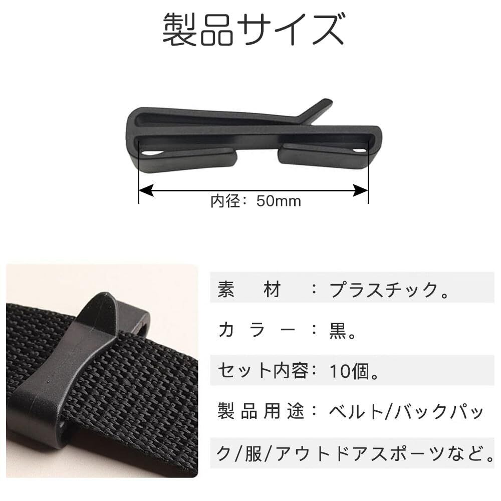 ベルトクリップ 幅テープに適用 10個セット 補助バックル テープクリップ ウェビング ベルト調整 楽に固定する 調整するためのバックルクリップ 軽量 リュック バッグ ラップ用 アウトドア用 ブラック