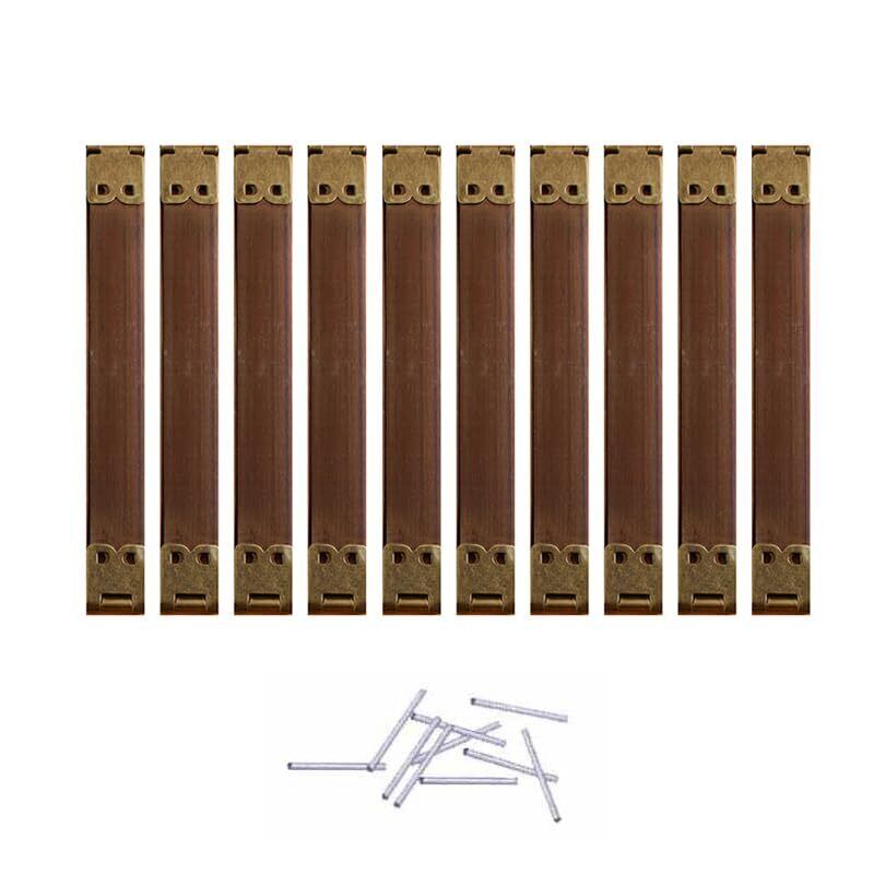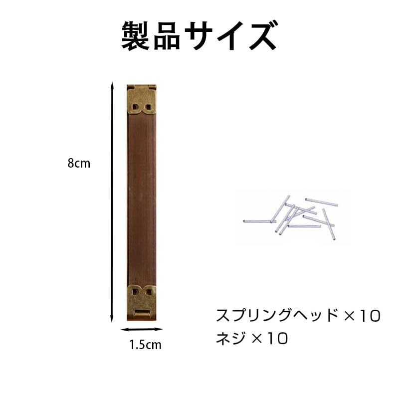 【商品仕様】 寸法は長さ8cm、幅1.5cmで、10個を1セットとして販売しており、ネジが付属しています。