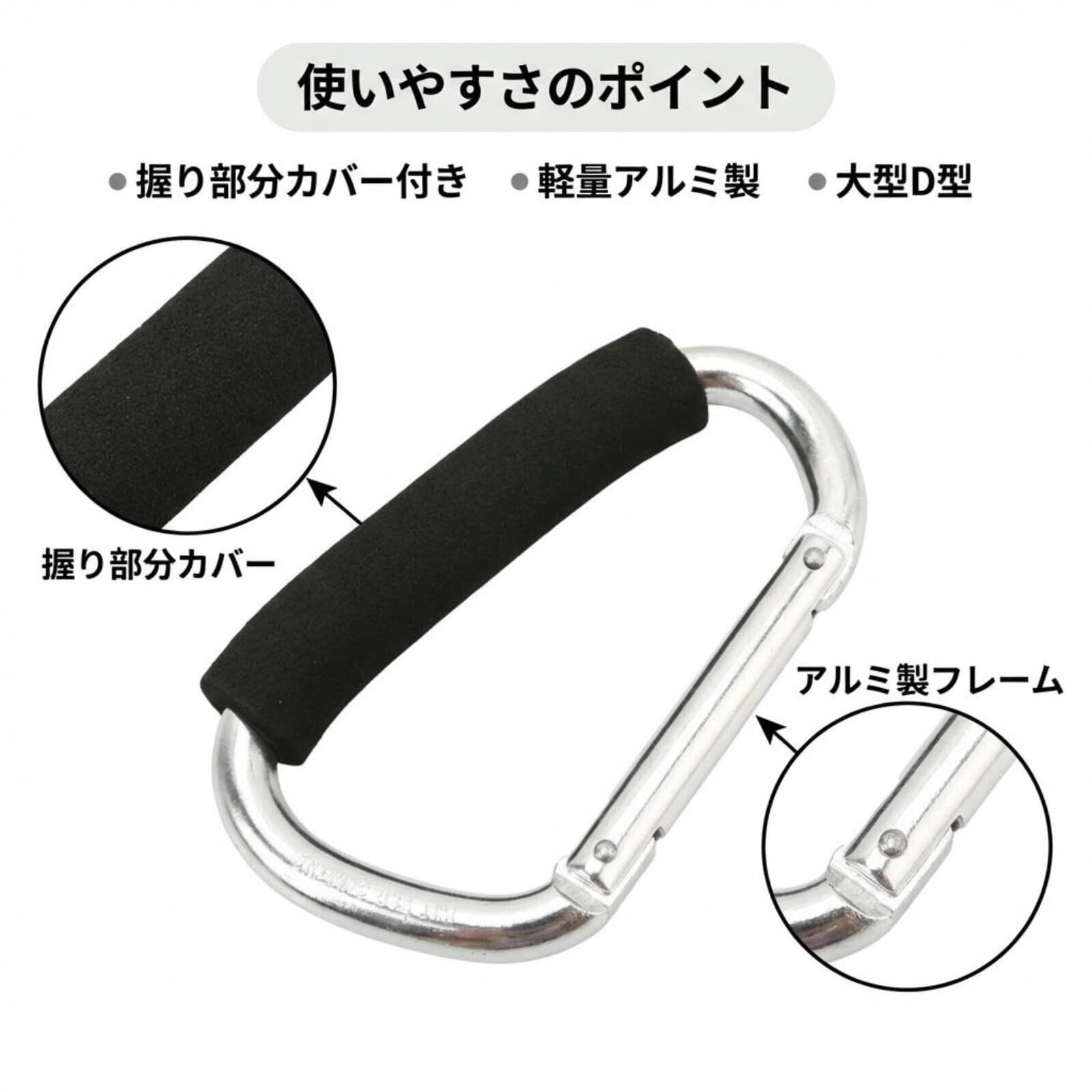 カラビナ 大型 アルミ D型 軽量 便利 DIY 釣り アウトドア スポーツ 散歩 買い物袋 手提げ用