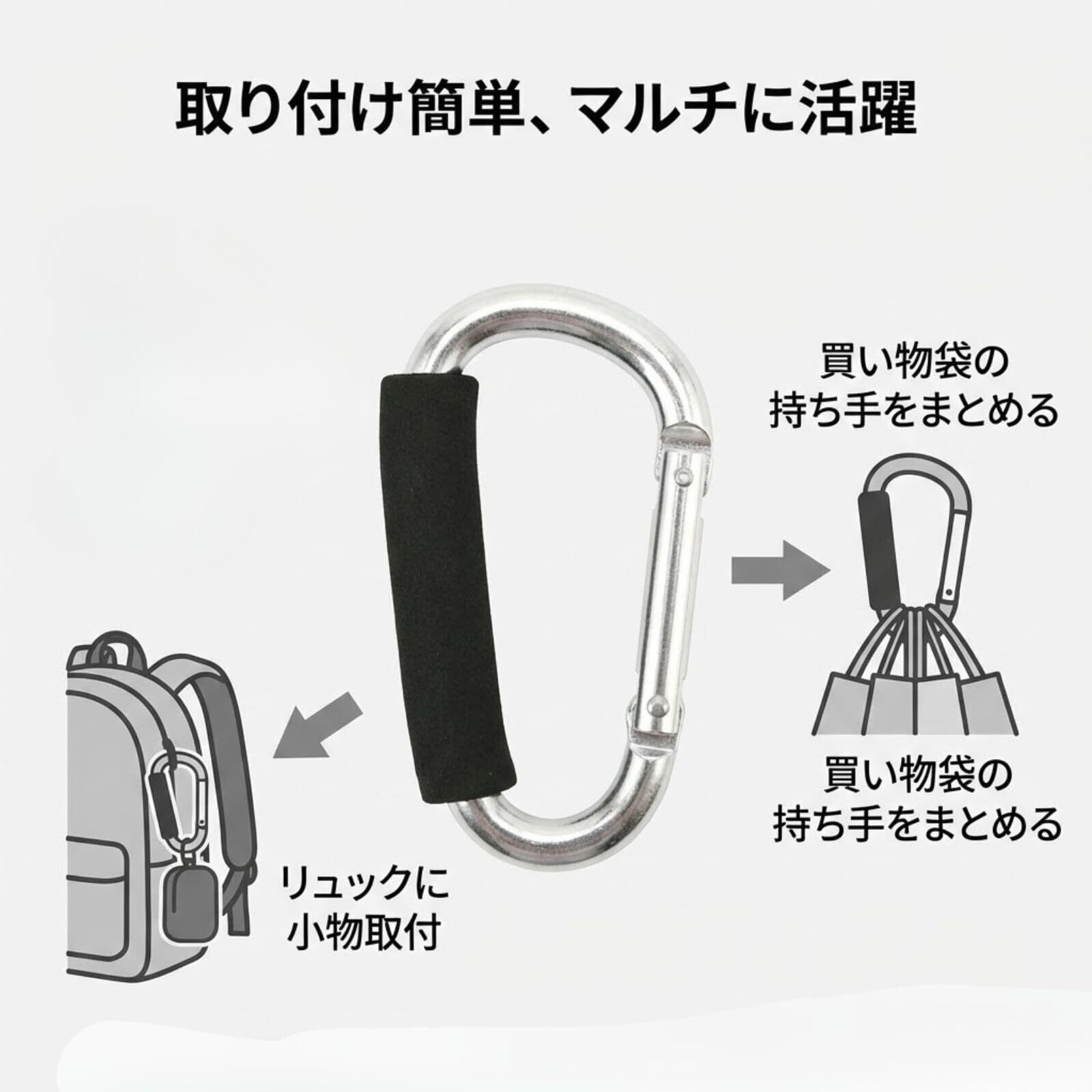 【日常に使える便利なカラビナ】 キャンプ・釣り・スポーツ・散歩・買い物袋の持ち手など、様々なシーンで活躍!