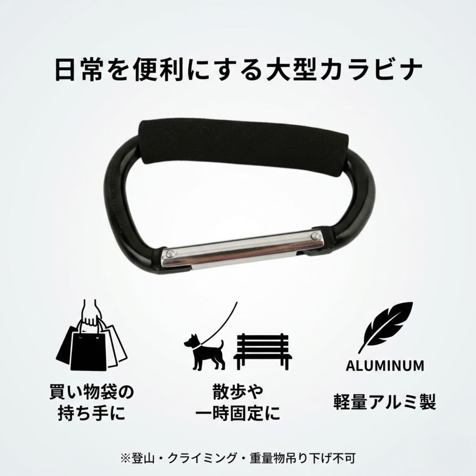 ※登山やクライミング、重量物の吊り下げには対応していません。安全のため、強い荷重がかかる用途には使用しないでください。