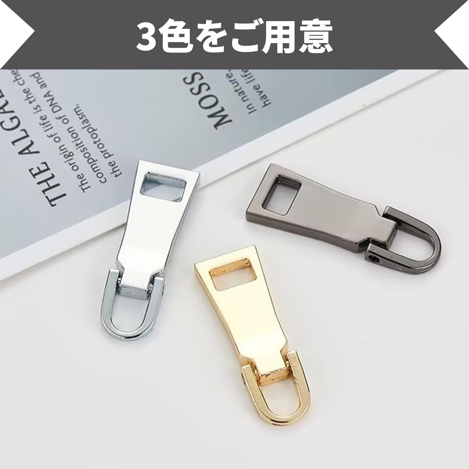 【交換用ファスナー 引き手】1セットは4個入りで、ブラック、シルバー、ゴールドの3色から選べます。