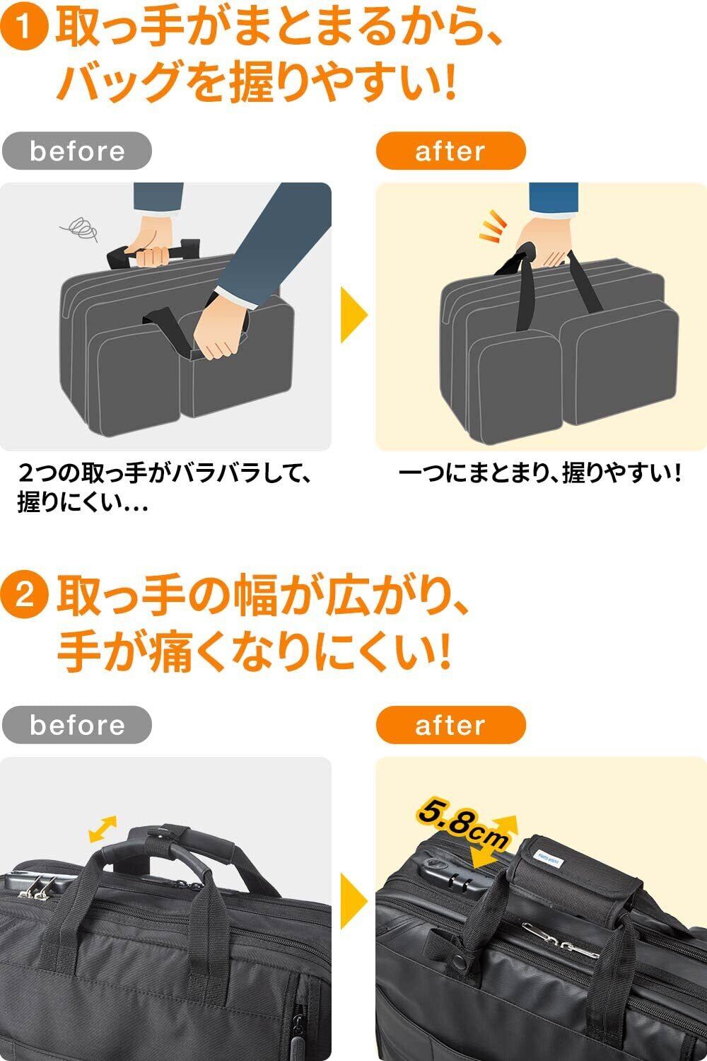 バッグの2つの取っ手を1つにまとめることができる持ち手カバーです。