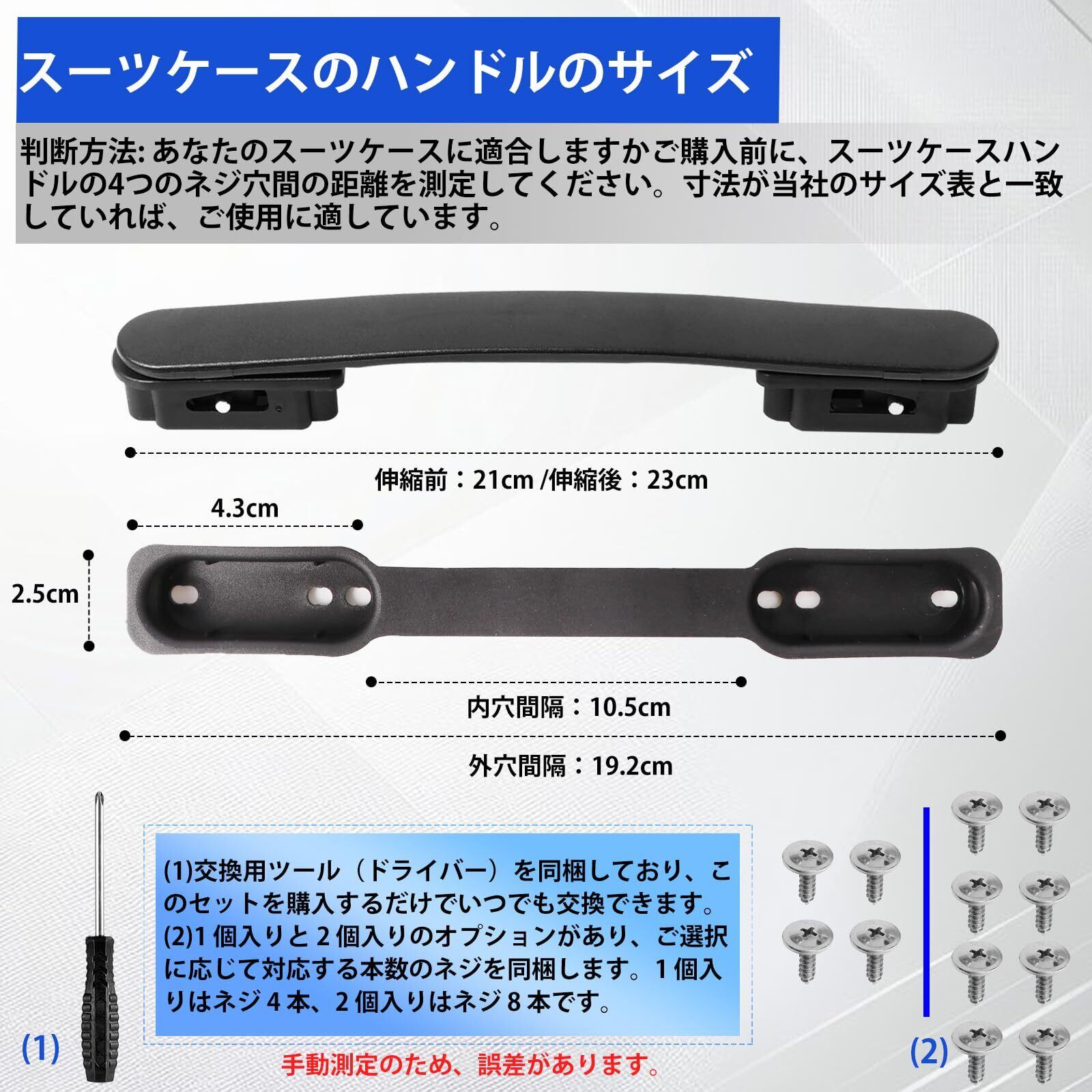 簡単取り付け対応(1 個装 / 2 個装可選): 特別な工具や専門知識は不要!付属のネジ 4 本とプラスドライバー(またはご自身のドライバー)だけで、古いハンドルを取り外して新しいものを固定できます。取付孔に若干の差異がある場合は、新しいハンドルの孔に合わせて微調整するだけで対応可能。1 個装は単一スーツケース用、2 個装は複数箱体や予備用に最適で、ご使用ニーズに合わせて選べます。