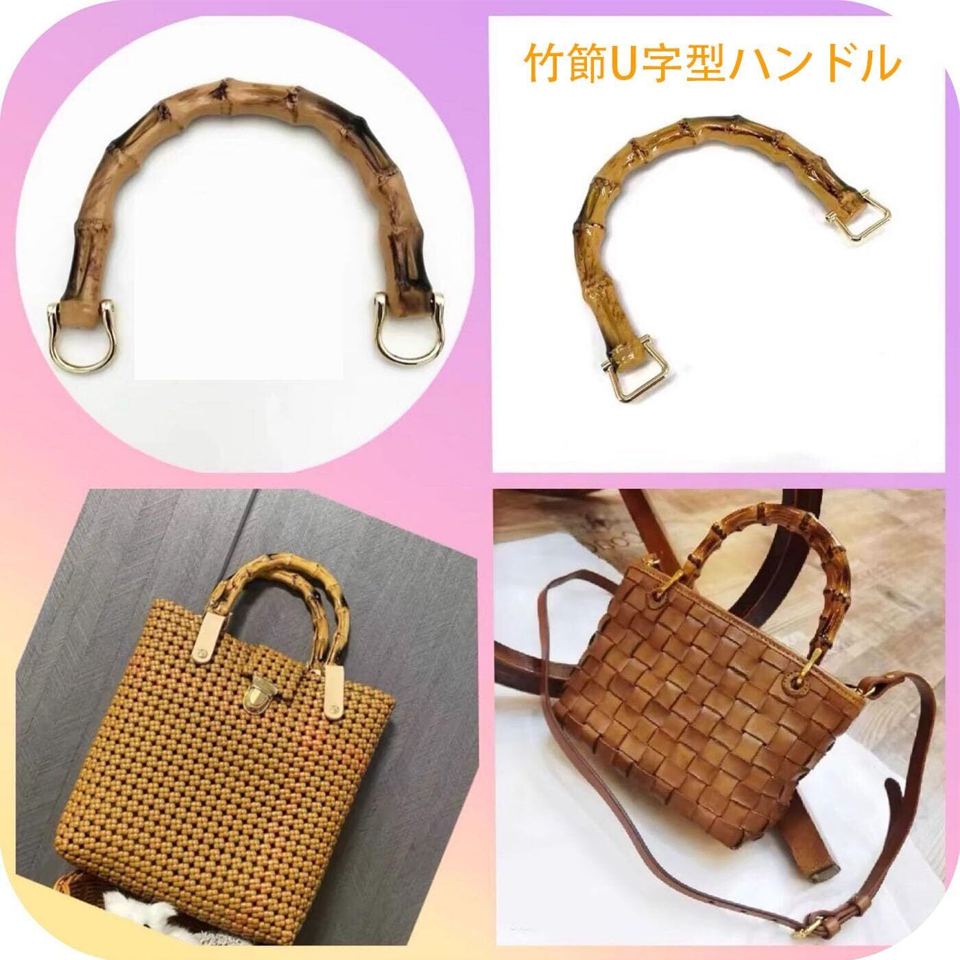 【2022最新】バッグハンドル 模造竹製 バンブー持ち手 4個入り DIY ハンドメイド バッグ用 ハンドバッグ 取っ手 手芸 バンブーハンドル