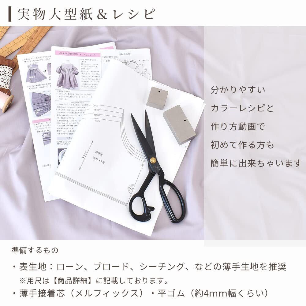 ご使用頂く生地によって出来上がりのイメージが変わります。薄手生地を推奨いたします。※商品ページのサンプルは薄手の生地を使用しています。制作前にお子様のサイズを測ってから始めましょう。生地の用尺はギリギリで設定しております。生地は余裕を持って生地はご購入下さい。