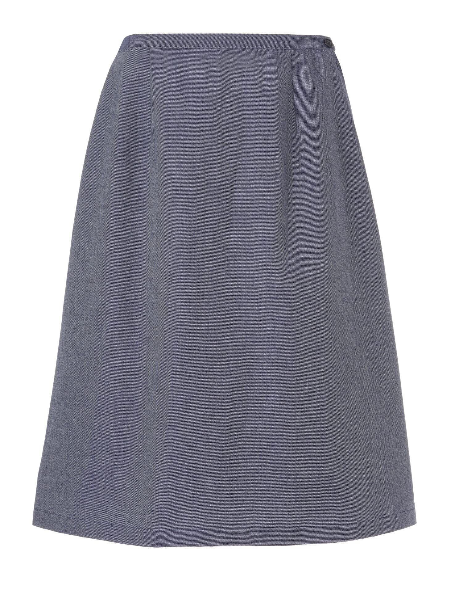 シンプルで流行のない基本型のスカート。ベルトには接着芯を使用し、少しヒップハングさせて着用するタイプ。ひざ下丈とひざ丈の程よく広がる台形シルエット。脇ファスナーあき。裏つきの説明つき。