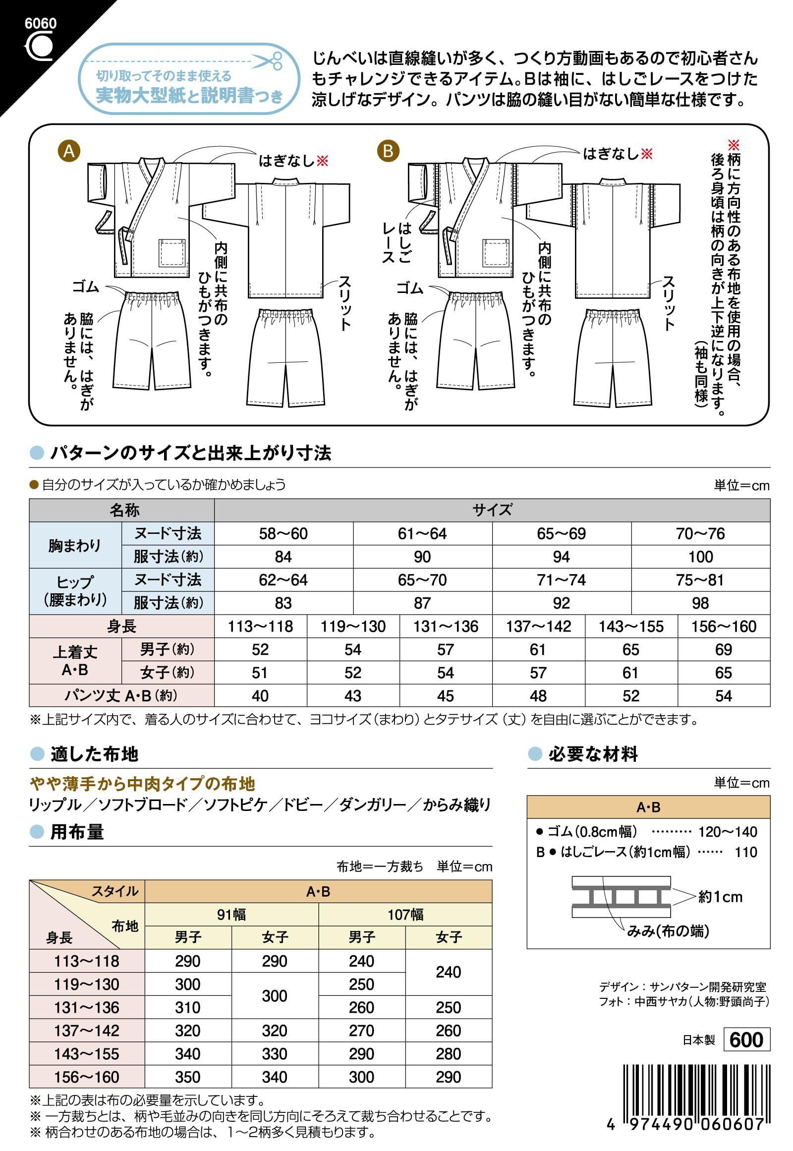 【2022最新】サン・プランニング 型紙 パターン 小学生じんべい 6060