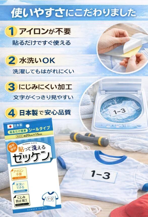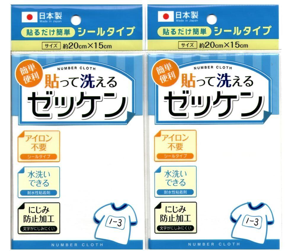 【新着商品】ゼッケン 貼って洗える シールタイプ 名札 ネーム 体操着 簡単 便利 アイロン不要 水洗いできる にじみ防止加工 20cm×15cm
