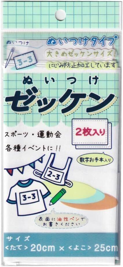 【在庫セール】ぬいつけゼッケン 体操服 ニジミ防止加工(20 cm x 25 cm 2枚入 x 2セット)