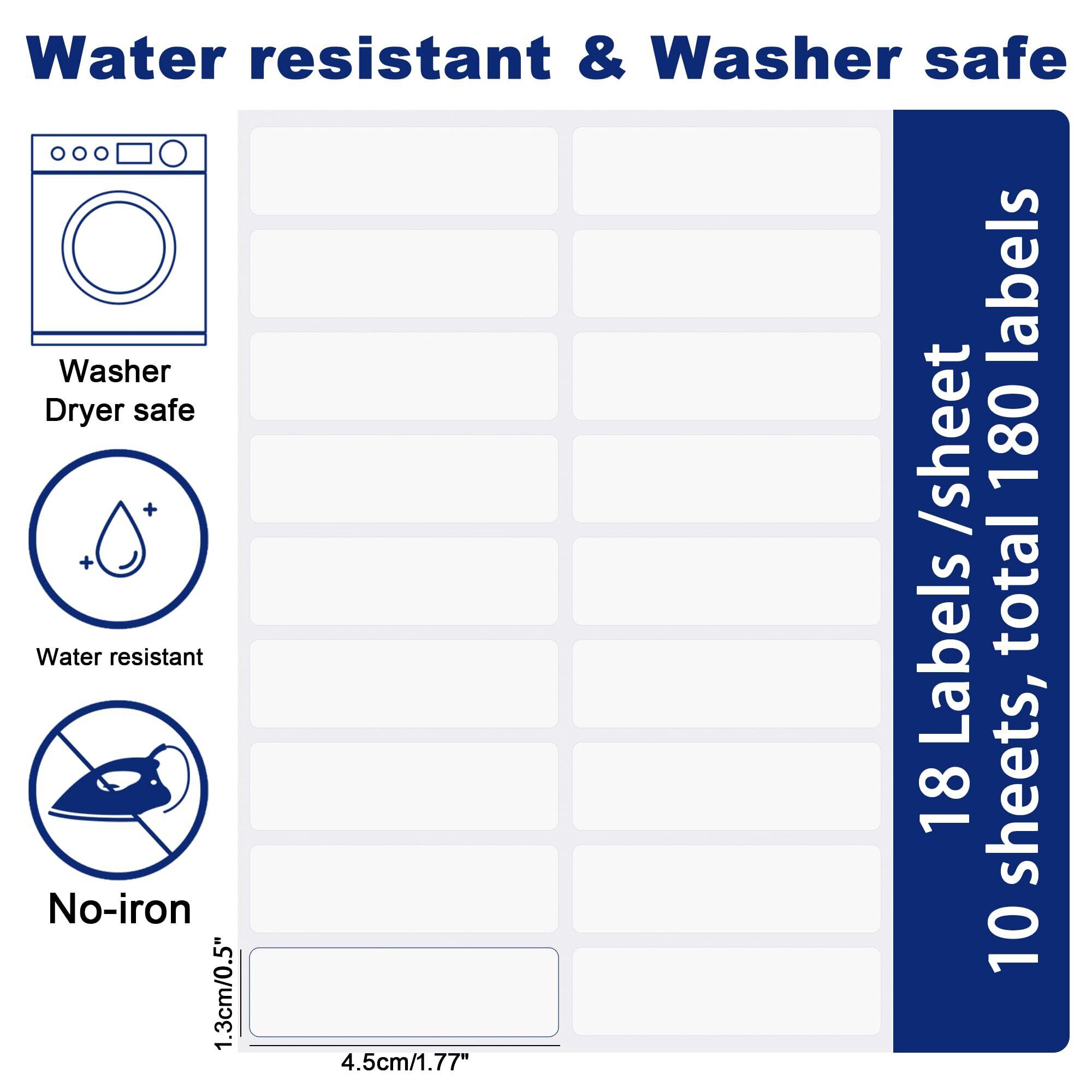 √ノンアイロン----独自の材料により、アイロンを必要とせずにラベルを服に直接貼り付けることができます。台紙からシールをはがし、滑らかな面を服に貼るだけです。ラベルは防水で、油性ペンを服に染めることはありません。洗濯前に衣類の襟マークや洗濯ラベルにシールを貼り、強く押してからしばらく放置してください。お湯では使用しないでください。