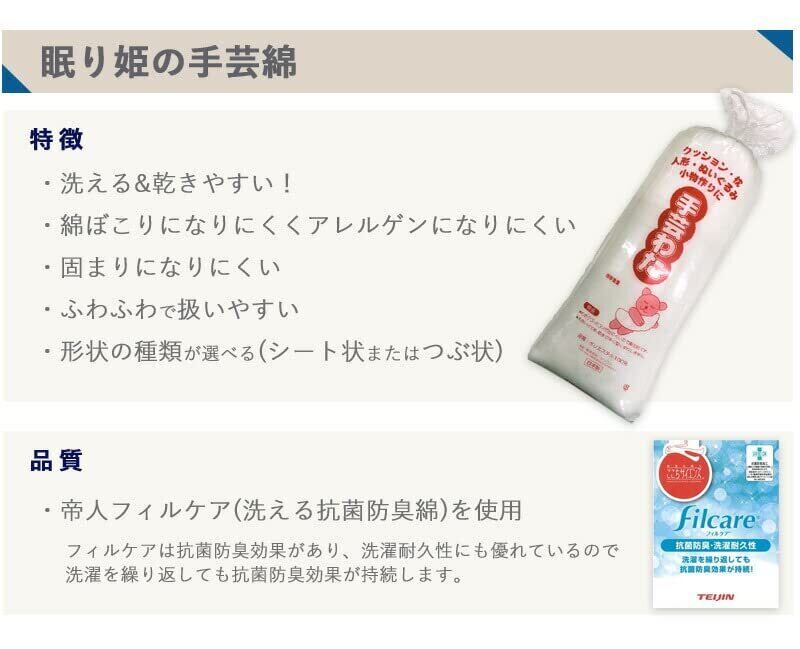 手芸わた 300g×2個 600g 洗える綿 つぶ状 ポリエステル綿 手芸綿 ハンドメイド 羊毛フェルト ぬいぐるみ 眠り姫 日本製