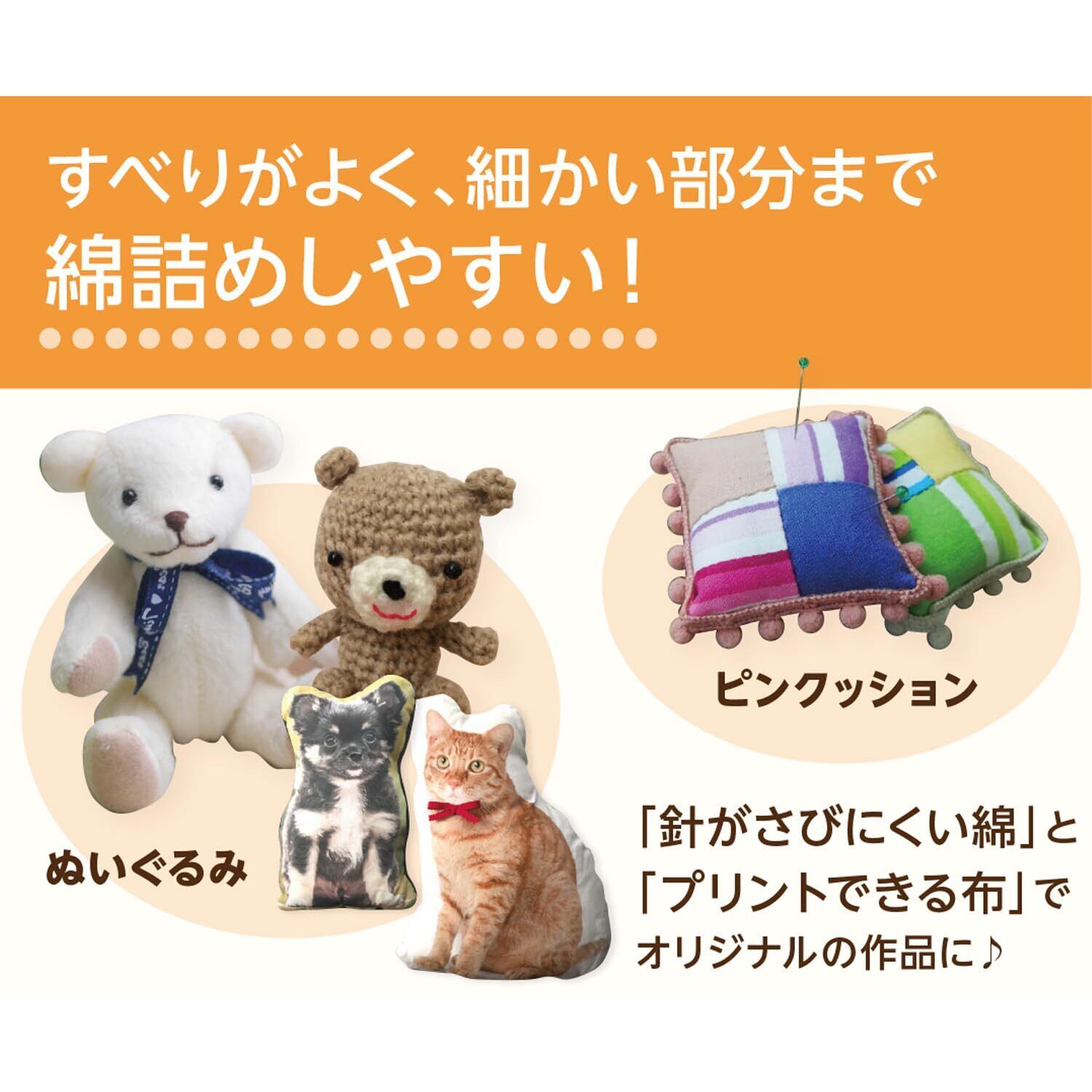 すべりがよく、細かい部分まで綿詰めしやすい!