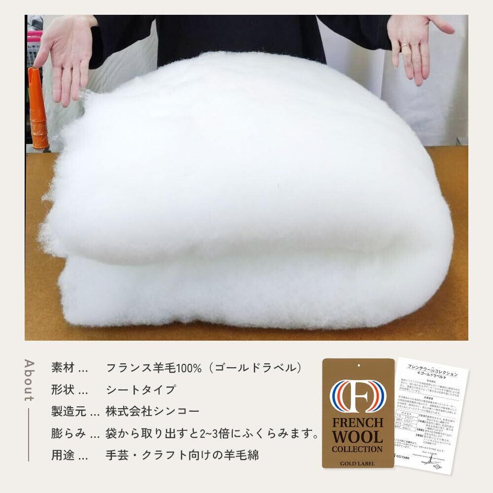 手芸わた 300g×1個 羊毛100%綿 シート状 ウール 手芸綿 ハンドメイド 羊毛フェルト ぬいぐるみ 補充 日本製