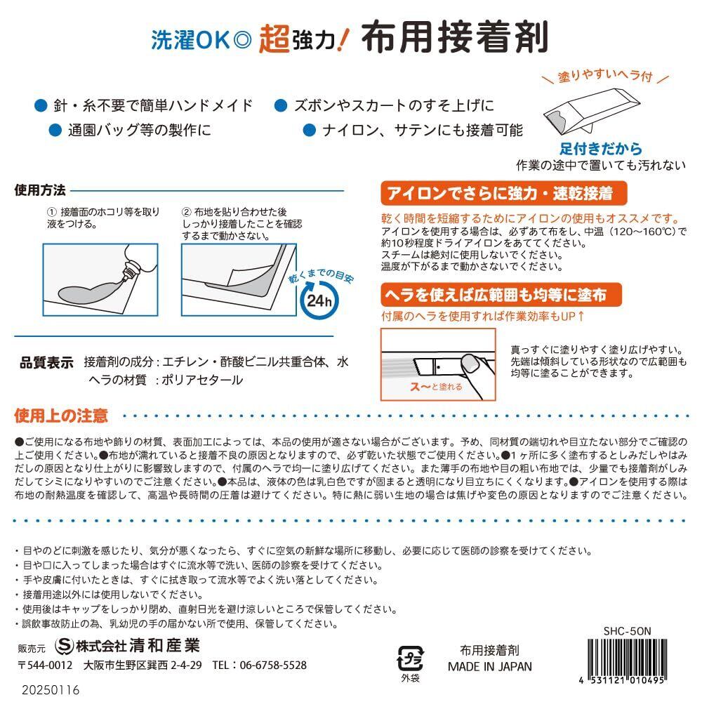 【特価セール】超強力!洗濯OK!安心の日本製!塗りやすいヘラ付き 布用接着剤 50g