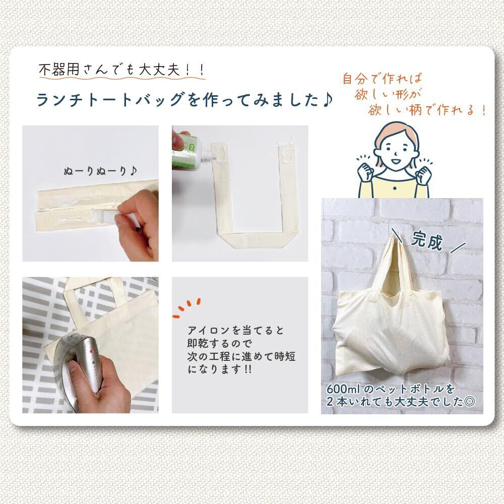 洗濯可能なので作ったものを衛生的にお使いいただけます。※接着剤を付けすぎてしまうと、接着剤がしみ出てきてしまい表面に影響が出たり、手や机を汚すことがありますのでご注意ください。(薄い生地の場合は少量でもしみ出すことがありますので特にご注意ください)