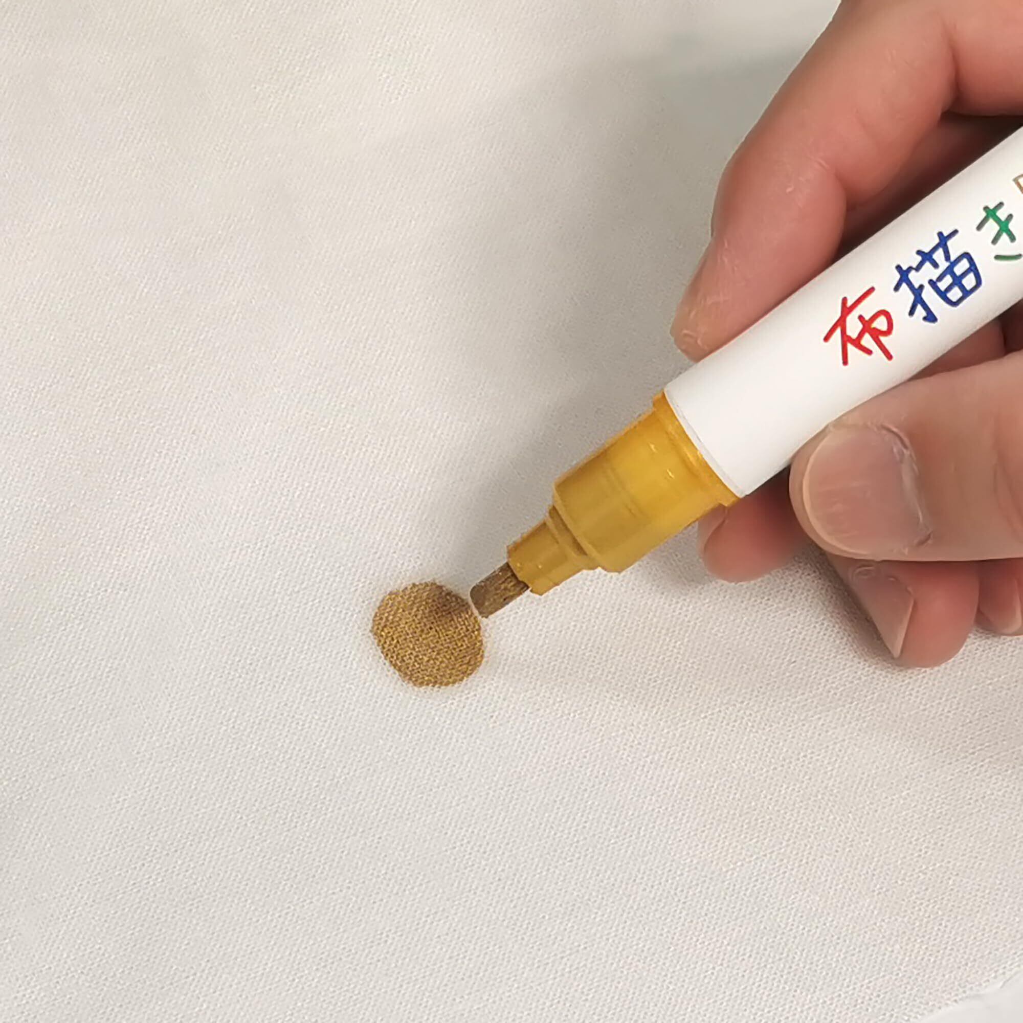 ご家庭で洗濯できる水性顔料布用マーカーです。 有害な有機溶剤を使用していないので、安心してお使いいただけます。 隠蔽性が高いので、濃色布に直接描いても発色がきれいです。 重ね塗りをすると下の色を隠す性質があります。 その際は最初に塗った色がしっかり乾いたことを確認してから塗ってください。 細線を表現する際は、別売の「布描きしましょ用替えペン先」がオススメです。