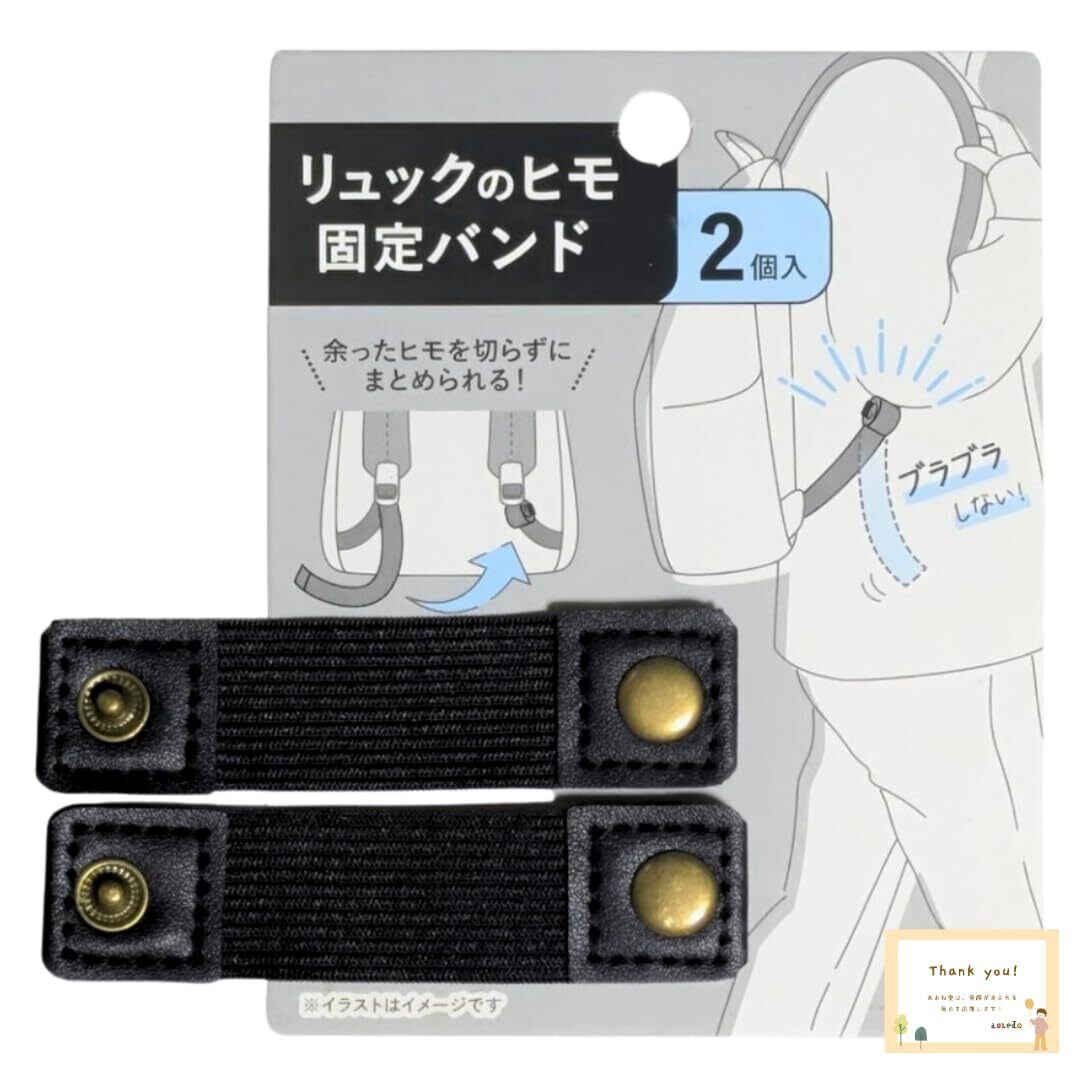 リュック ヒモ 固定バンド 余ったヒモをすっきりまとめる スナップボタン 簡単取付 2個入 ブラック