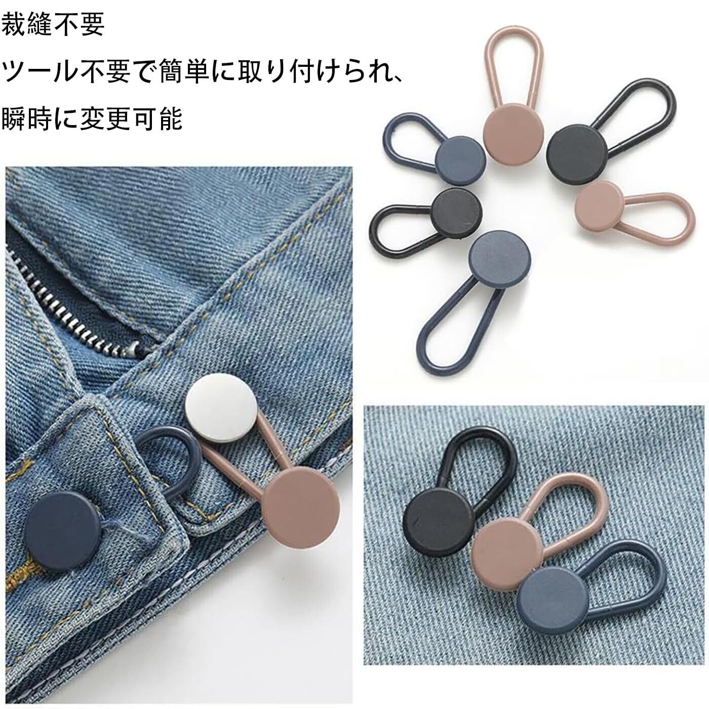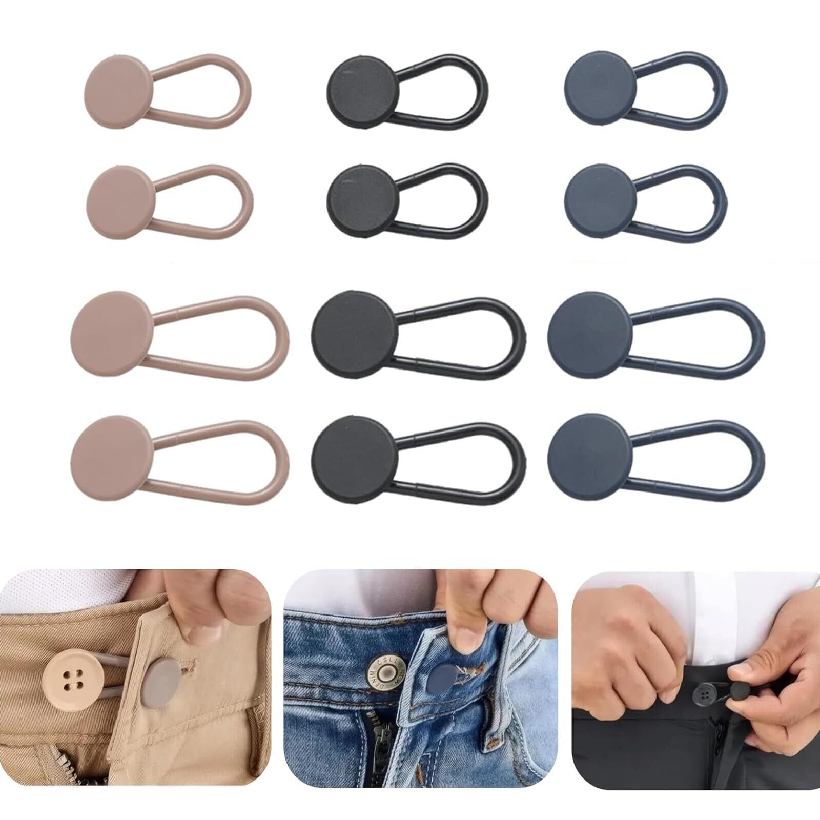 ウエスト調整 ボタンエクステンダー 3色 12個入り シリコン素材製 裁縫不要 コンパクトで便利 取り外し可能 スカート ドレス ジーンズ用 アジャスター