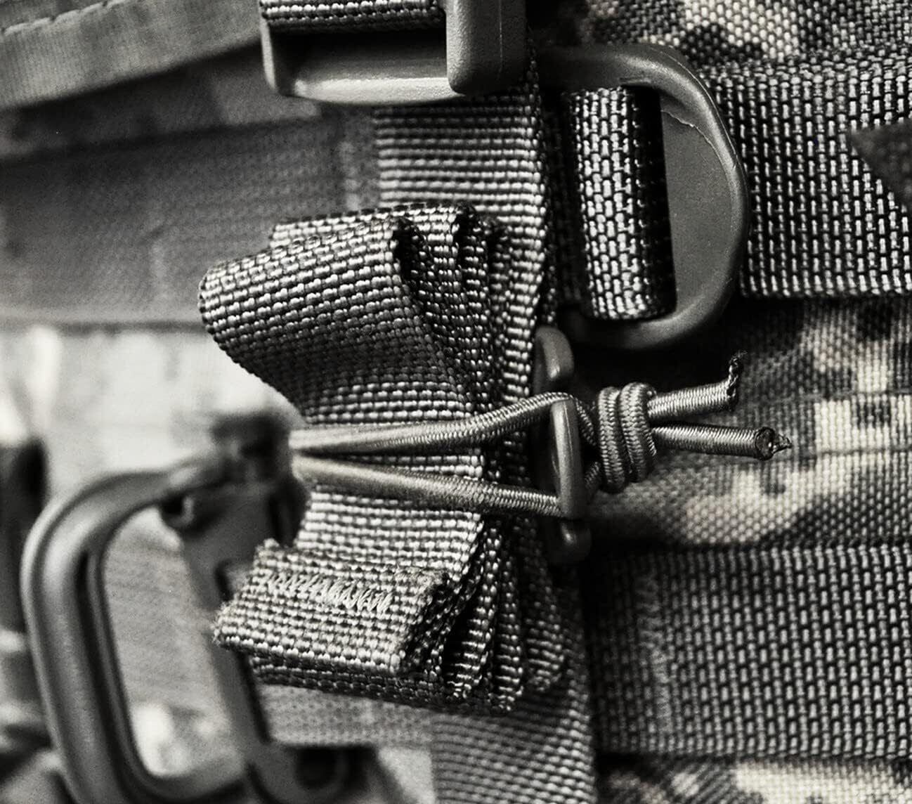 【多機能 ウェビング 結束 ゴムバンド】アウトドア・キャンプ、レジャー、登山、トレッキング、サバゲー、写真・動画撮影シーン、旅行・トラベル、自転車・サイクリング・ツーリング、などで使用するリュックやベストにもオススメのバックルクリップ結束用伸縮ゴムバンド、ウェブドミネーターとも呼ばれ、チェストストラップやリュックひもの余った部分を束ねて纏めることが出来ます。アジャスターにて調整しきれない紐に対してベルトループのように機能します。紐やポールに巻きつければ吊り下げ紐としも機能します。