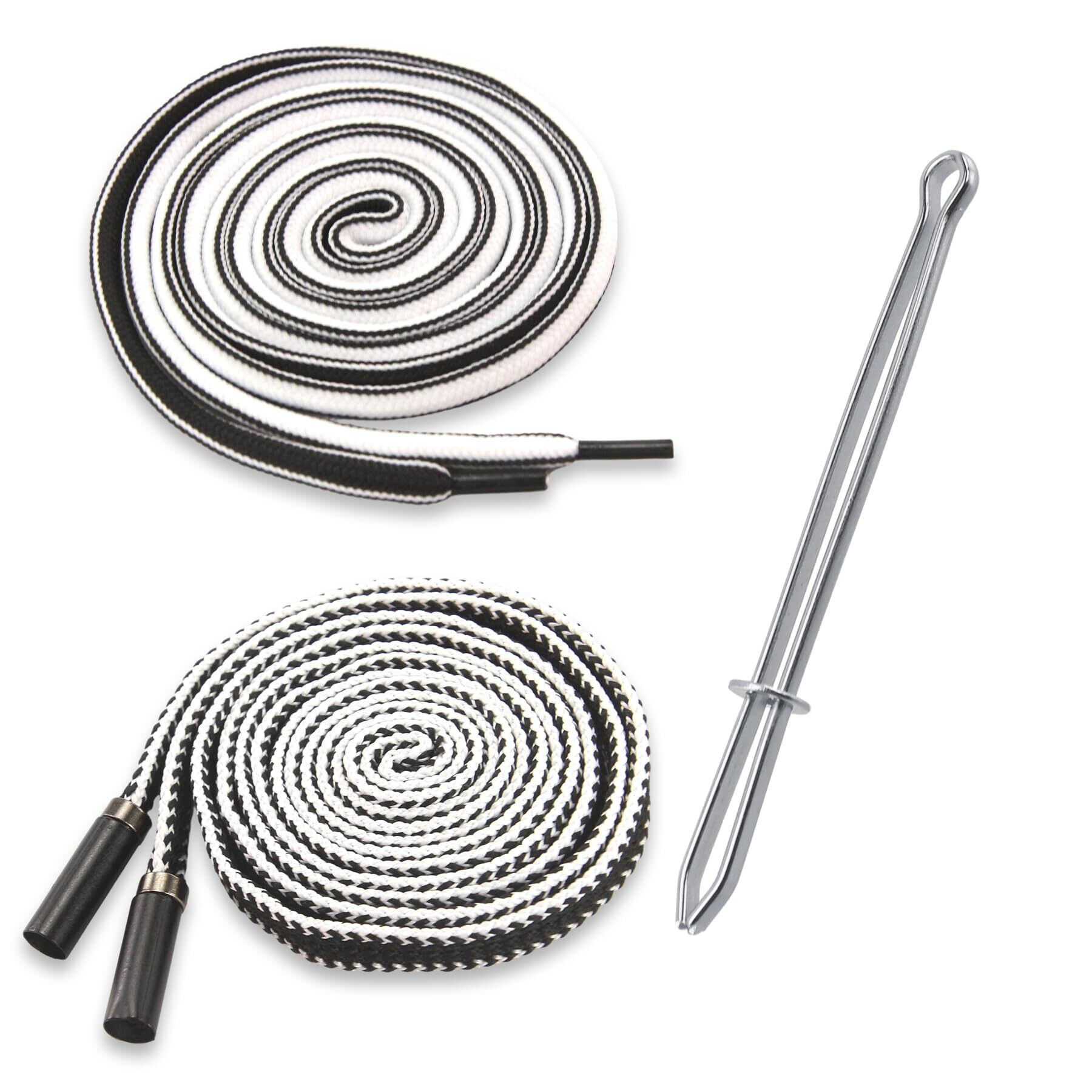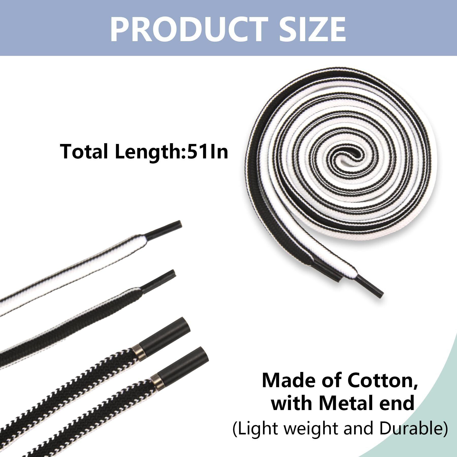 BOROLA 2本入り 51インチ コットンドローストリング、スウェットパンツとショーツ用交換ドローストリング、ユニバーサルフーディー用ドローストリング交換、簡単な金属スレーダー付き(ブラックホワイト)