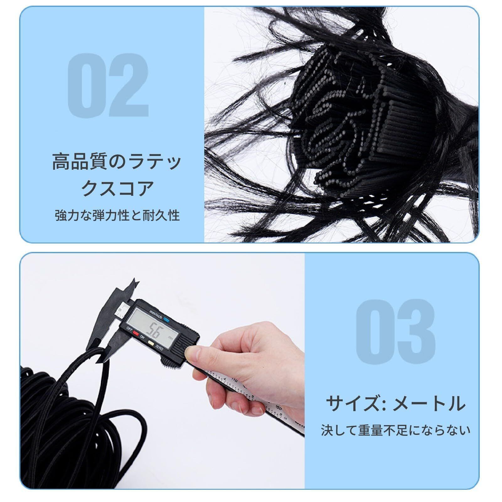 ️【長さ調節】本製品のラテックスゴムコードは、ハサミでカットして長さを調節することができます。本製品をカットする際は、両端をライターで炙ってください。そうすることで、表面のポリプロピレンフィラメントが溶けるため、ほつれにくくきれいに扱うことができます。ヘアアクセサリーのゴム紐や、カーゴパンツや布団などの裾や袖のたるみを補修するゴムバンドとしてもお使いいただけます。