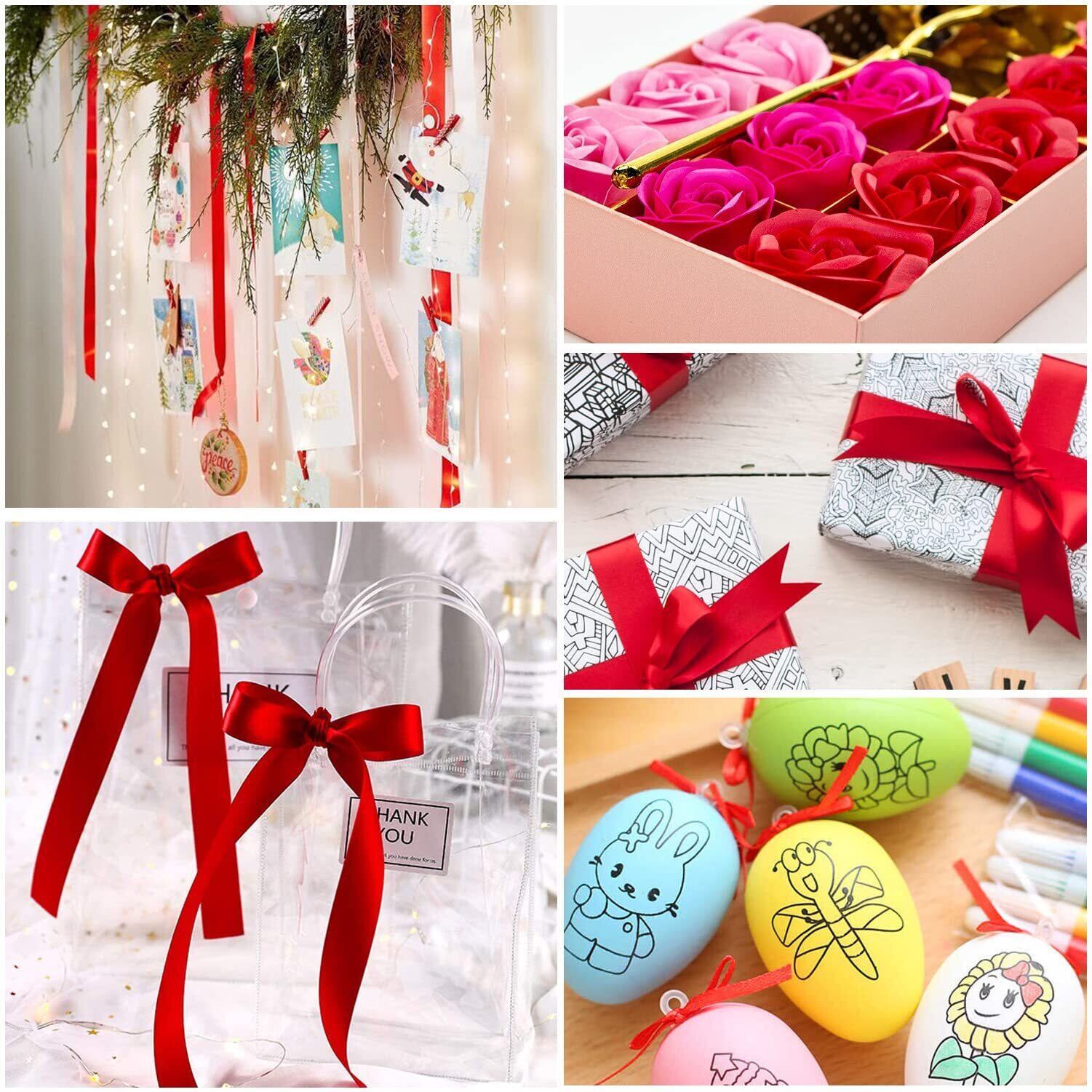 【2022最新】25mmレッドサテンリボン、23メートル手芸用ファブリックリボン、ギフトラッピング、ヘアリボン、誕生日や結婚式の装飾