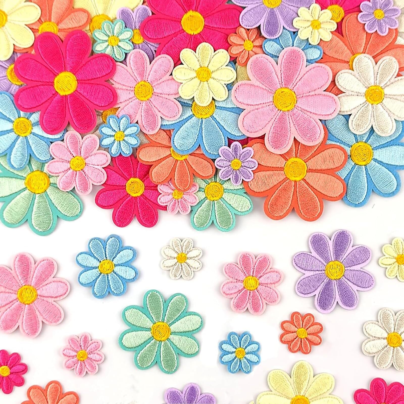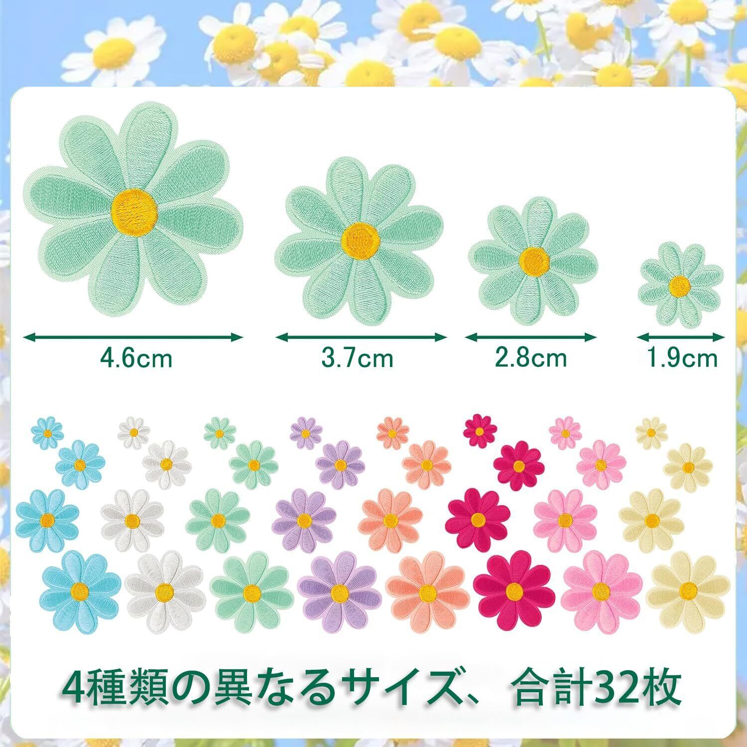 【32個お得セット】マイクラ ワッペン 32枚セット、4つのサイズ、8色を含む大人気なヒナギクの刺繍ワッペンセット、必要に応じて適切なシールを選ぶことができます。