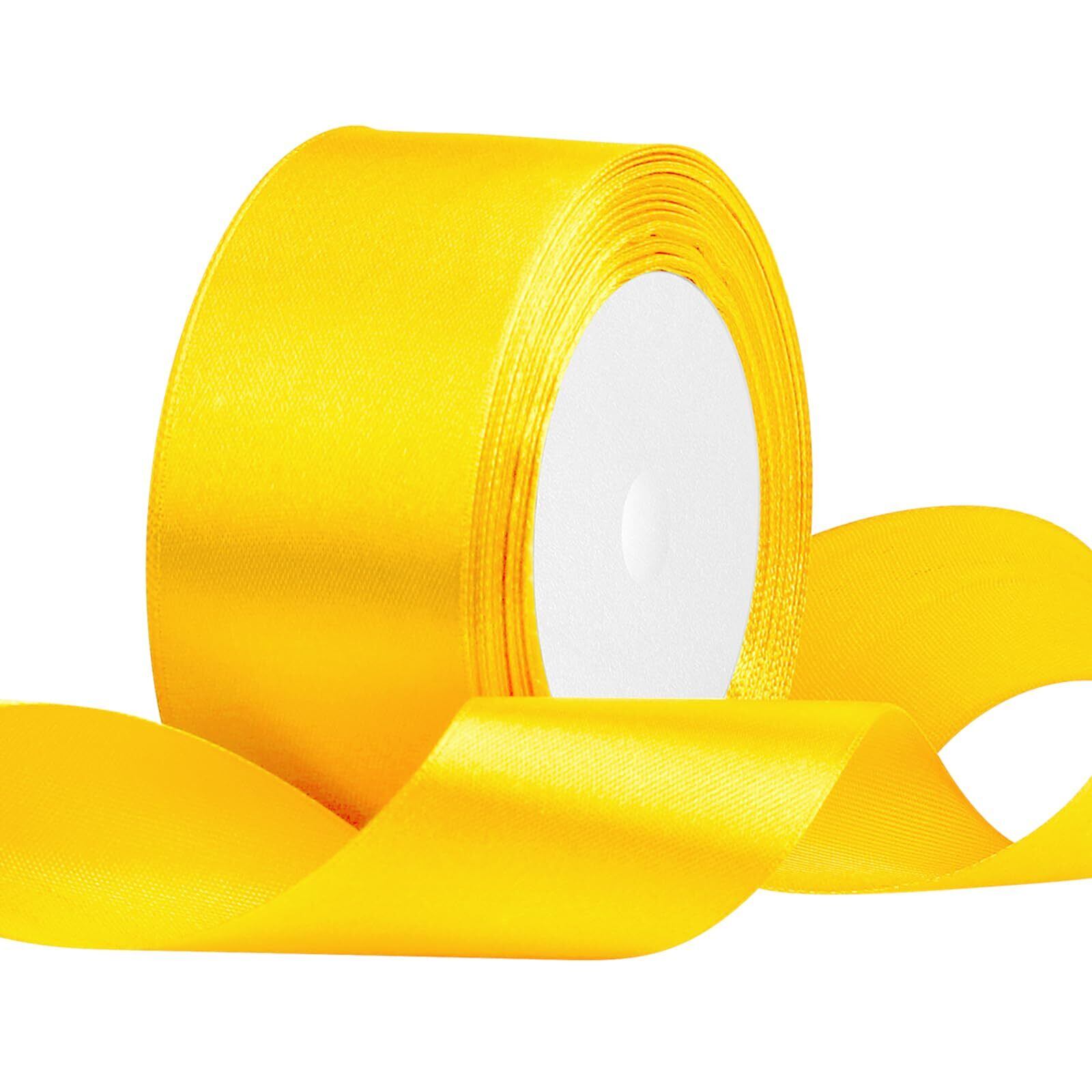 【特価セール】40mm黄色いリボン、23メートルDIYクラフト、ギフトラッピング、ヘアリボン、クリスマスツリー、結婚式や誕生日の装飾用サテン