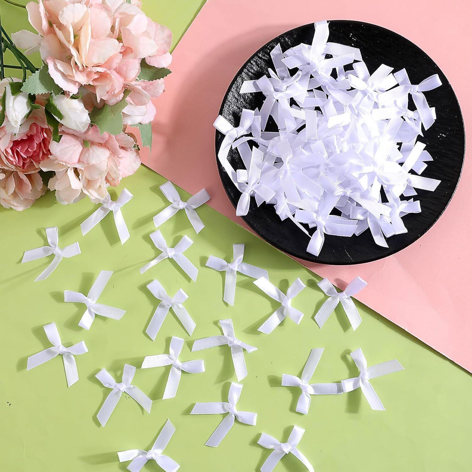 SaveSooo リボン パーツ リボンシール ミニリボンボウ ミニ 蝶結 ヘアクリップ ミニファブリックサテンリボンフラワーボウ クラフト レディース 髪留め 女性 入学式 DIY 製造 ウェディング 30個セット(ホワイト)