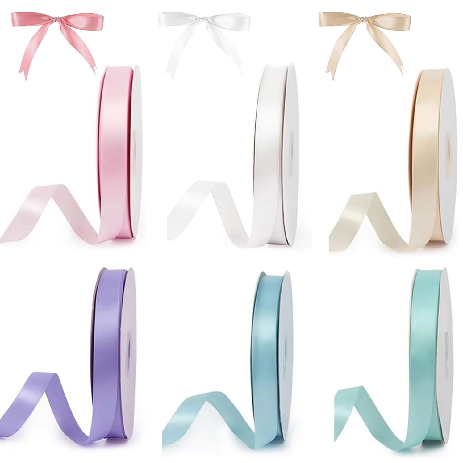 リボン サテンリボン カーリングリボン サテンリボン包装リボン束リボン6色セット10ミリメートル幅クラフト包装花材手作りの装飾素敵なギフトリボン