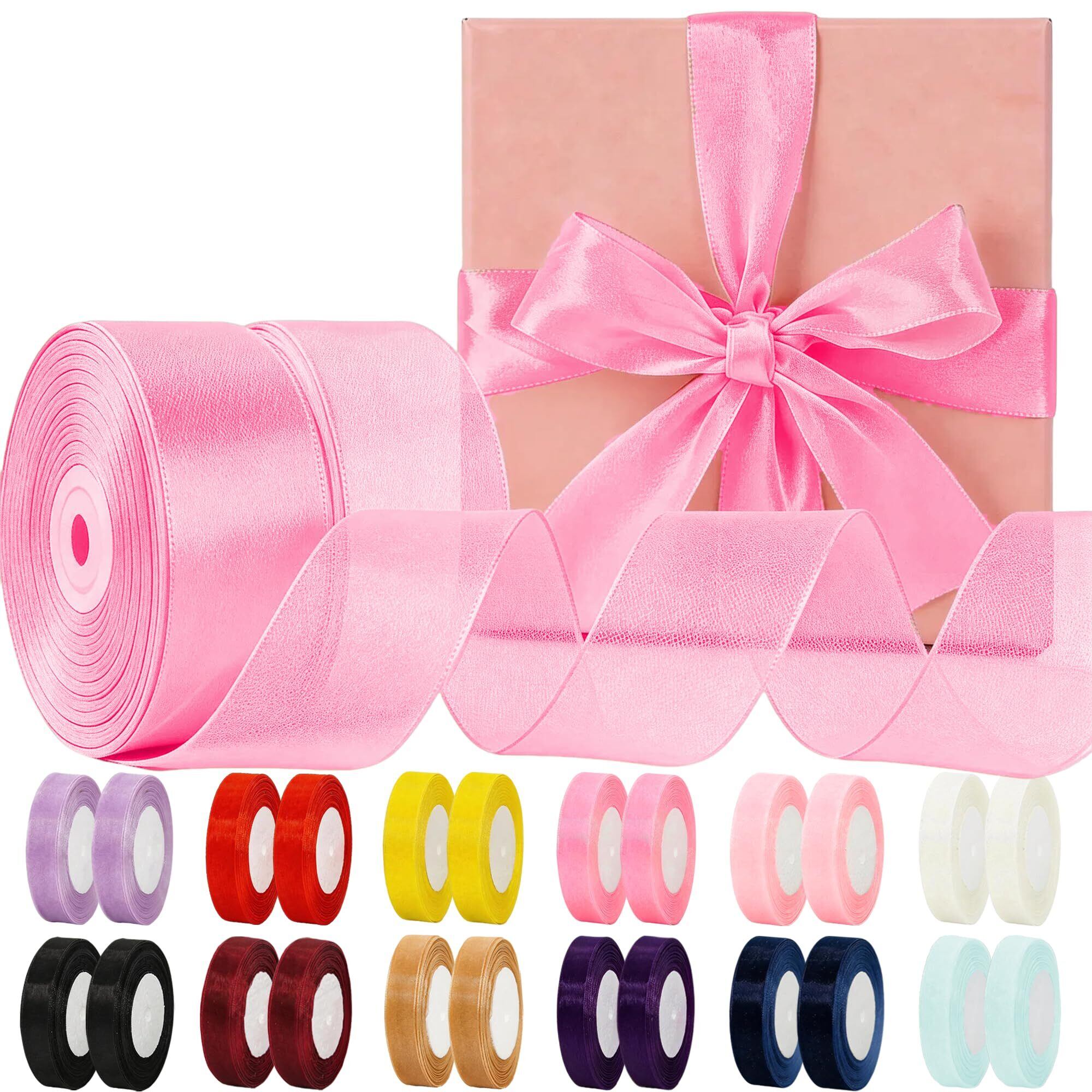 オーガンジーリボン 20mm 45メートル ギフトラッピング シフォン 太め 飾り DIY 手芸用 クリスマス (ピンク)